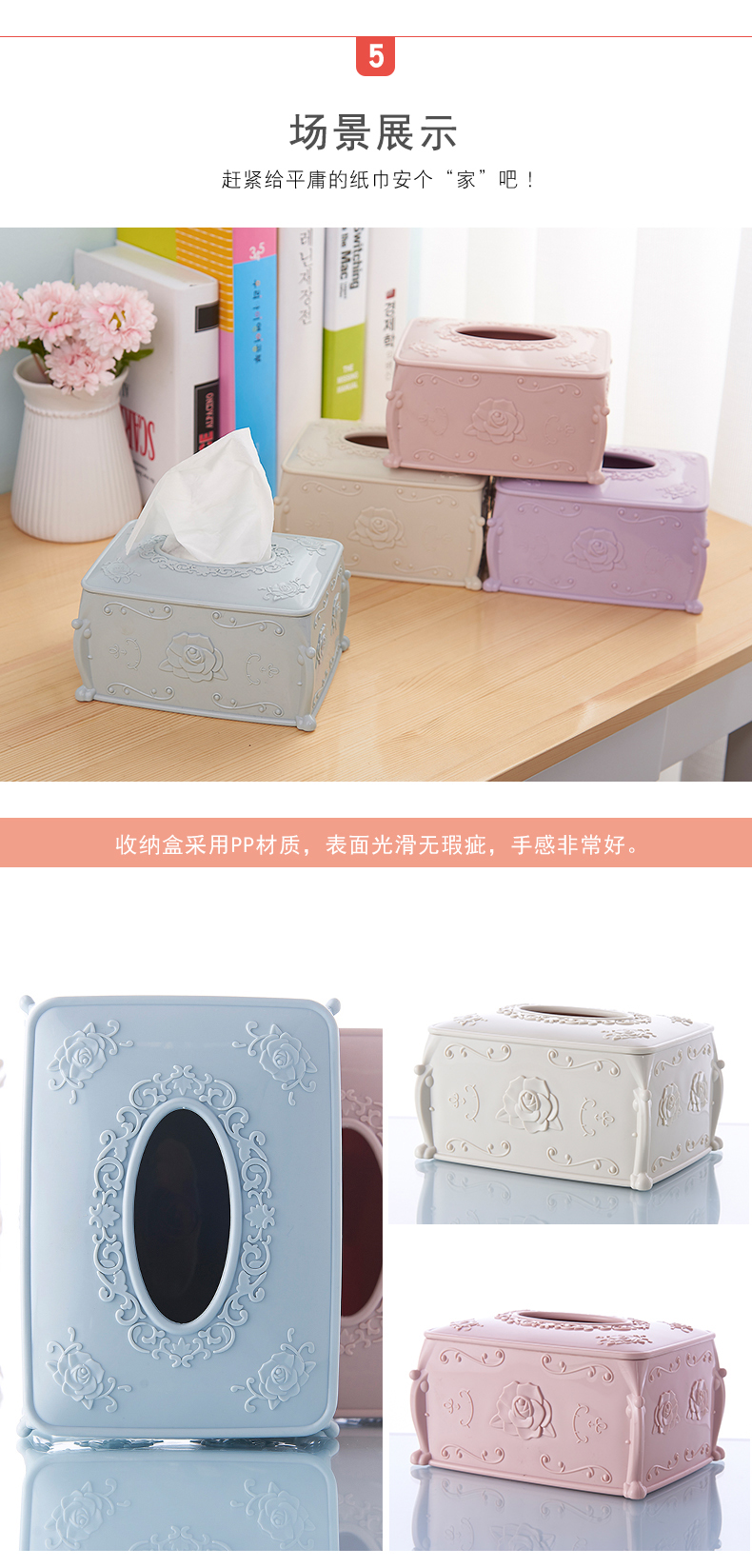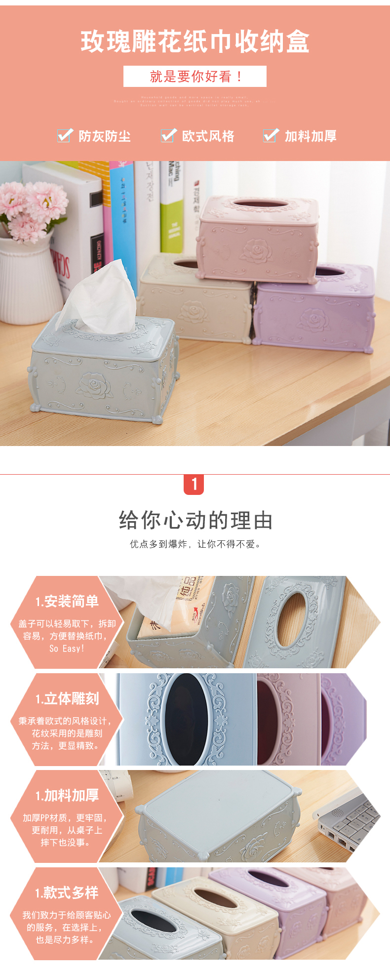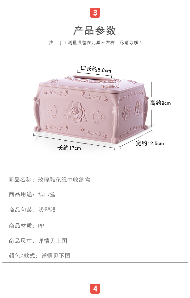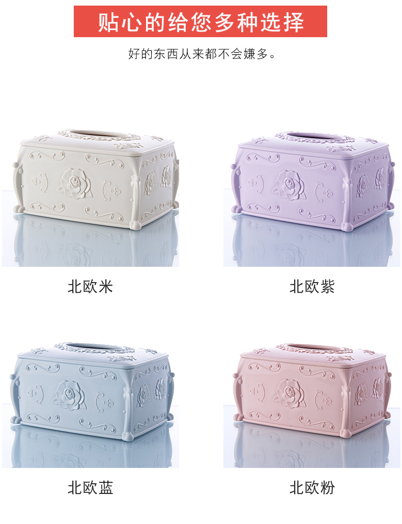 商品名称:欧式玫瑰雕花纸巾收纳盒--北欧粉