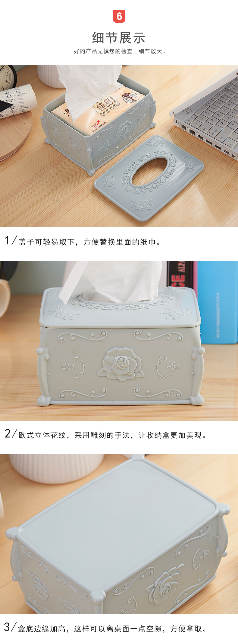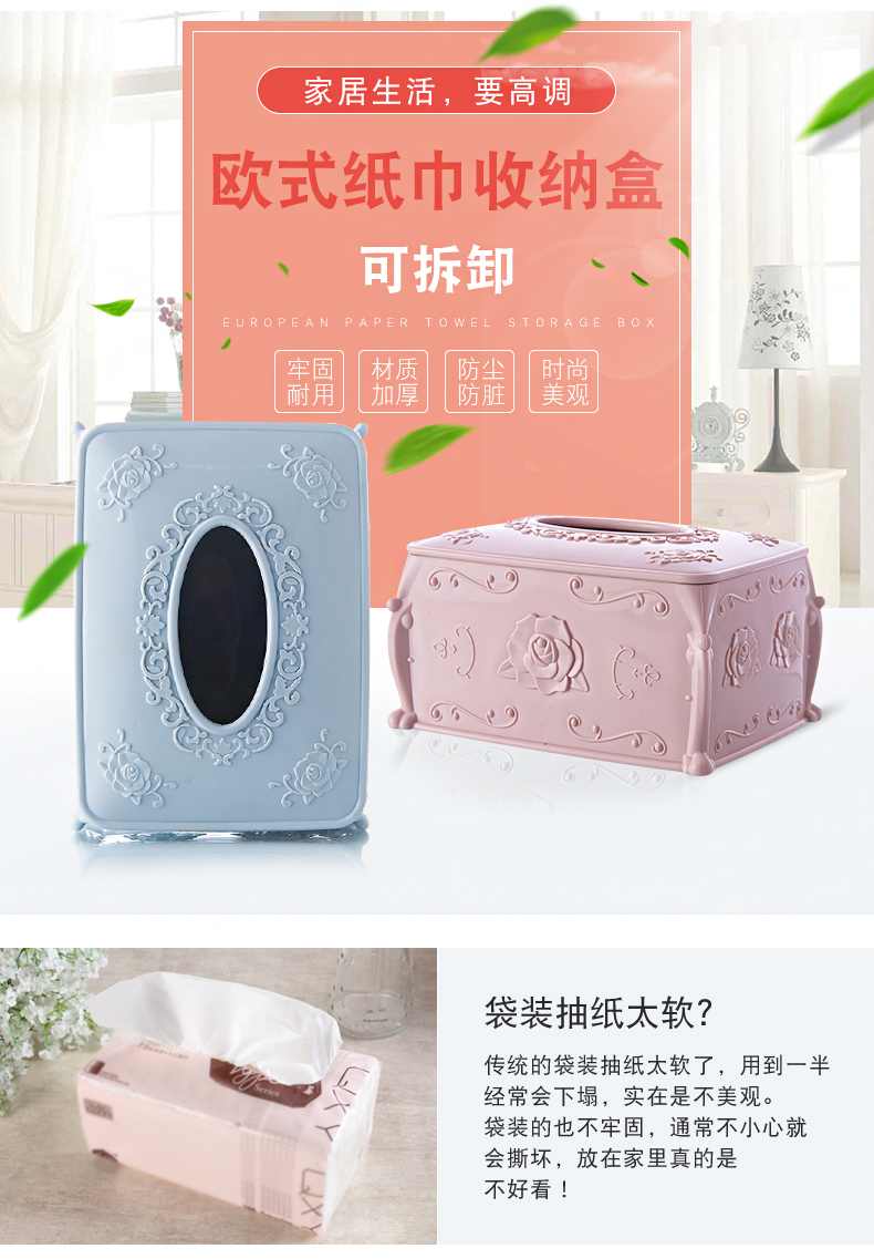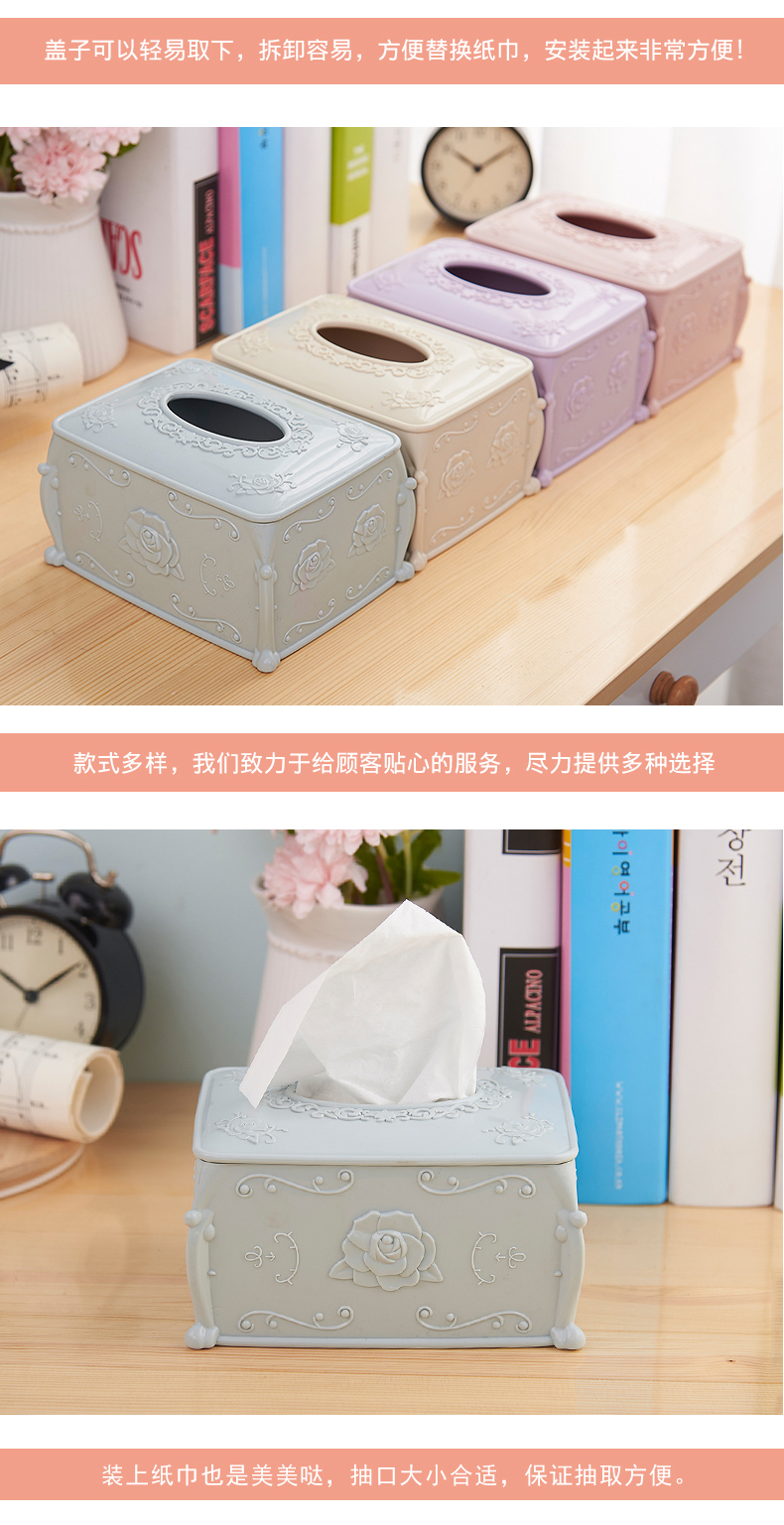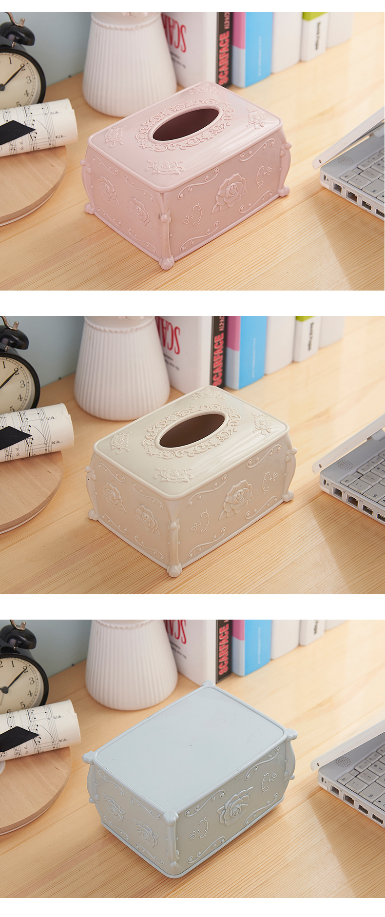 商品名称:欧式玫瑰雕花纸巾收纳盒--北欧粉