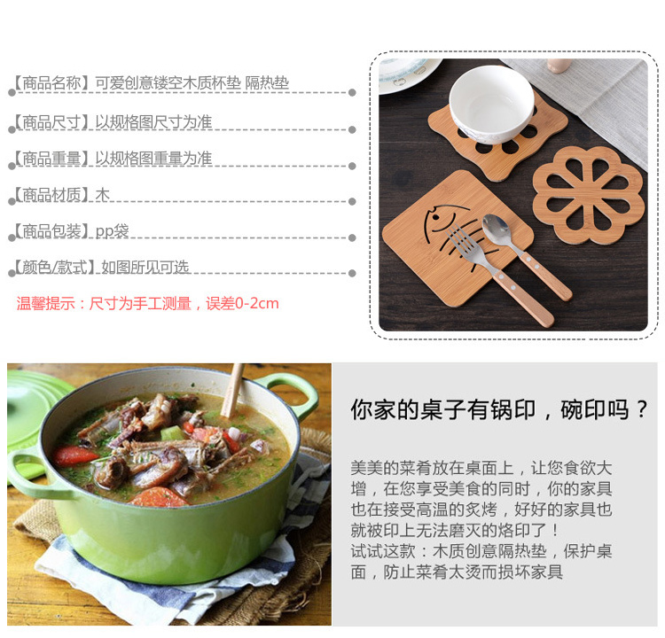 商品名称:大号镂空防烫加厚木质隔热垫 杯垫--鱼骨 营销活动小礼品