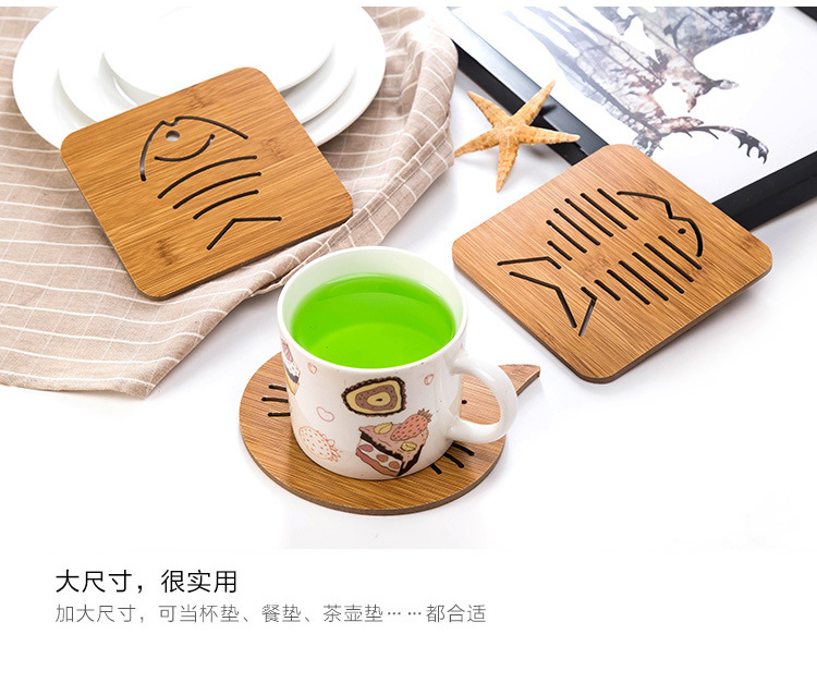 大号镂空防烫加厚木质隔热垫 杯垫--鱼骨 营销活动小礼品