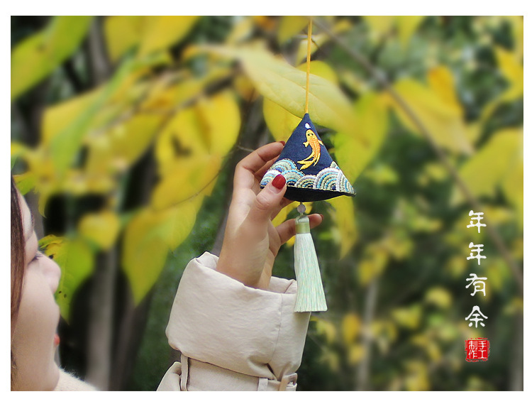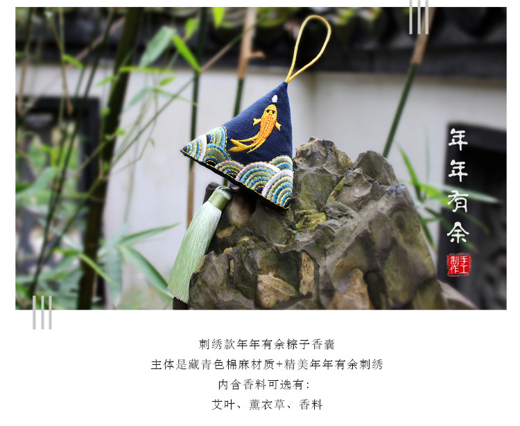 商品名称:年年有余草本刺绣香囊 手工制作艾叶薰衣草香囊 创意伴手小礼品