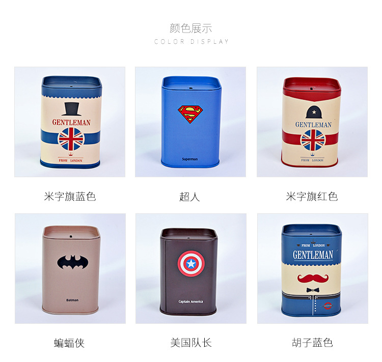 商品名称:欧美英伦风储蓄罐 马口铁储钱罐 文具笔筒 展销会礼品