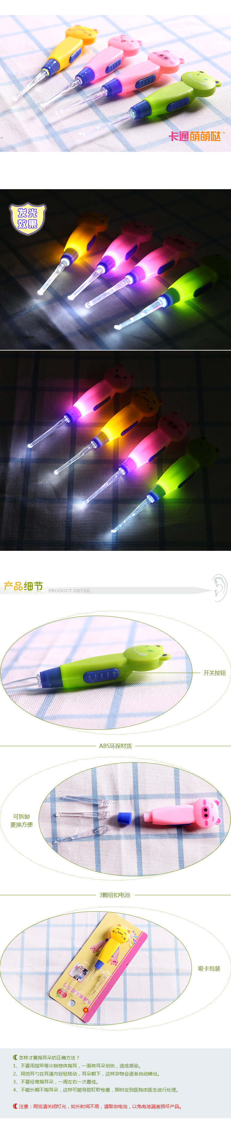 商品名称:小猫卡通动物发光可拆卸配3头耳勺 可爱耳勺