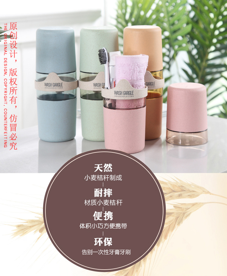 商品名称:小麦秸秆洗漱杯 一杯两用胶囊设计 环保材质可降解 公司活动礼品 便宜