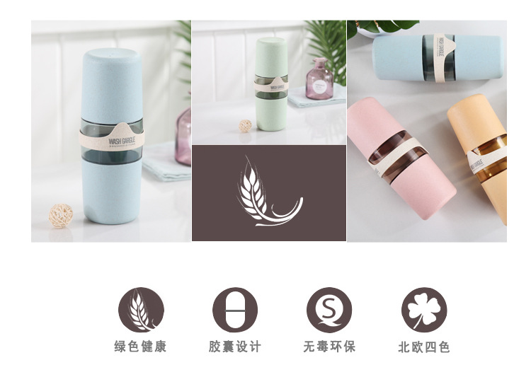 小麦秸秆洗漱杯 一杯两用胶囊设计 环保材质可降解 公司活动礼品 便宜