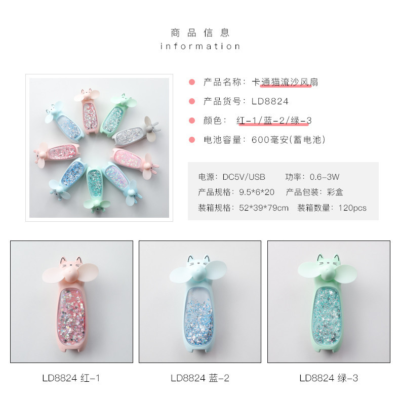 商品名称:动物迷你小风扇 炫目流沙装饰 吸引客户的小礼品有哪些
