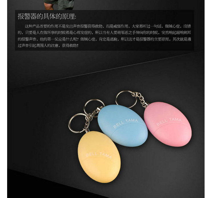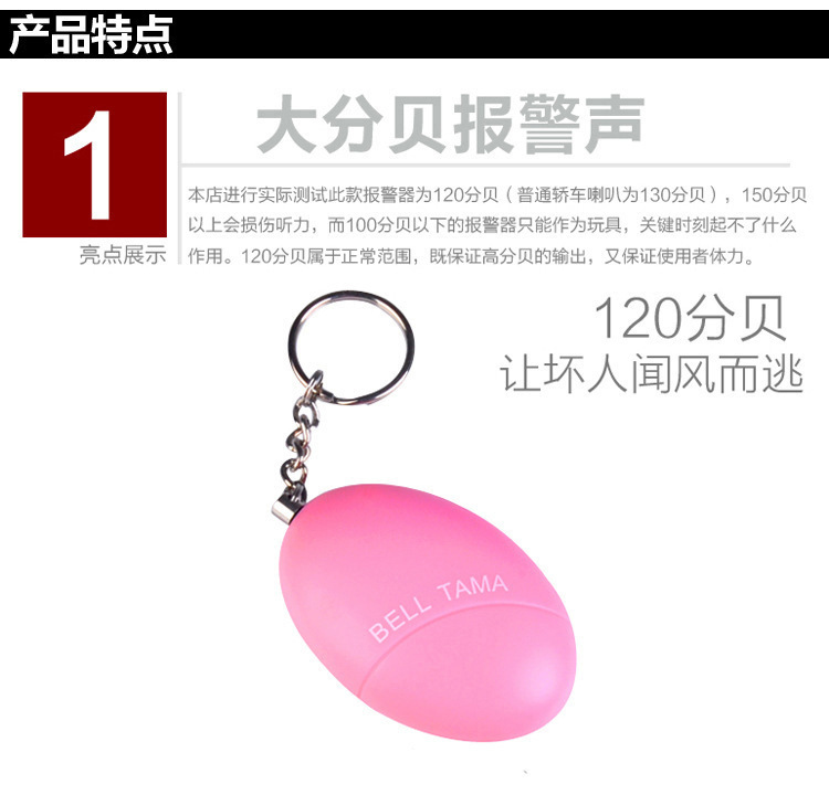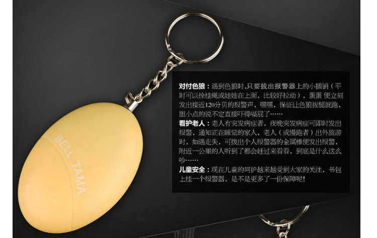 商品名称:带钥匙扣挂件防身报警器防狼器 大分贝报警声携带方便 与安全相关的小礼品