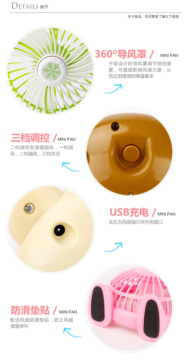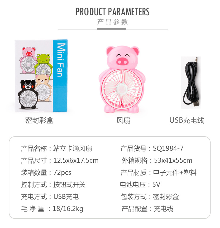 商品名称:卡通萌宠站立造型小风扇 便携式台式USB小电扇 促销礼品