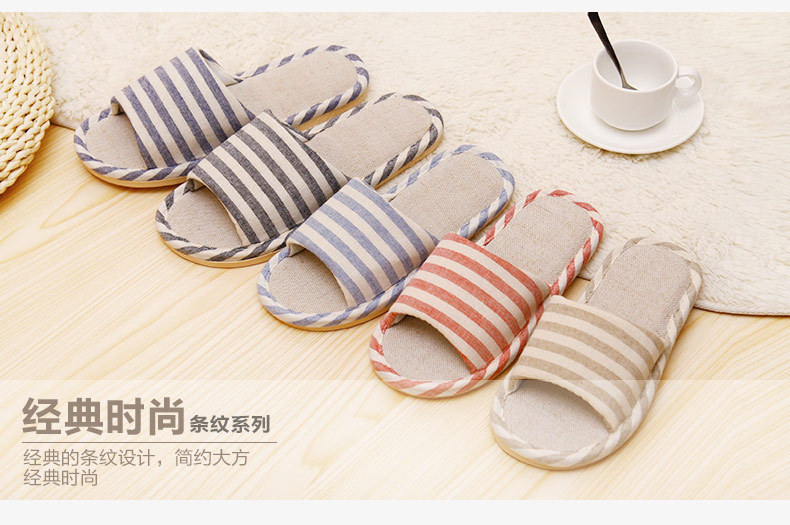 商品名称:条纹棉麻家居拖鞋地板防滑