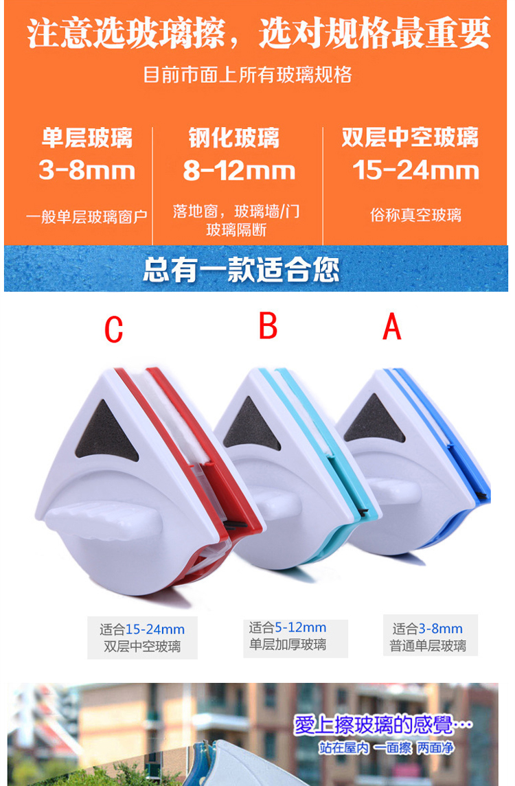 商品名称:双层磁性中空擦窗器/双面玻璃擦3-8mm(K8142)专注创意礼品
