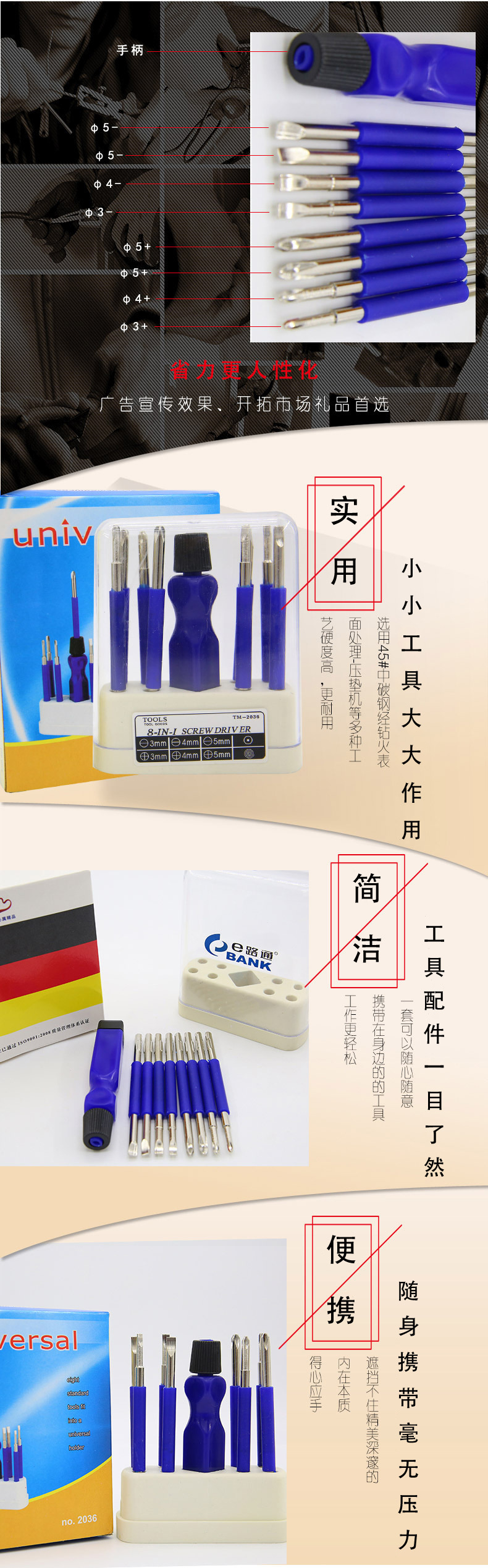 9合1优质钢材小工具套装 家居常用经典工具9件套 农村家庭礼品派发
