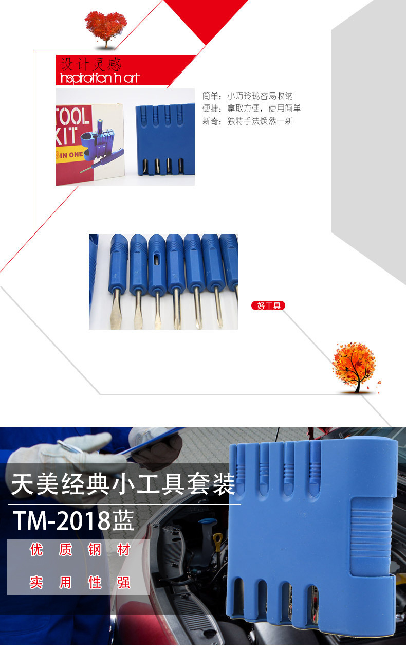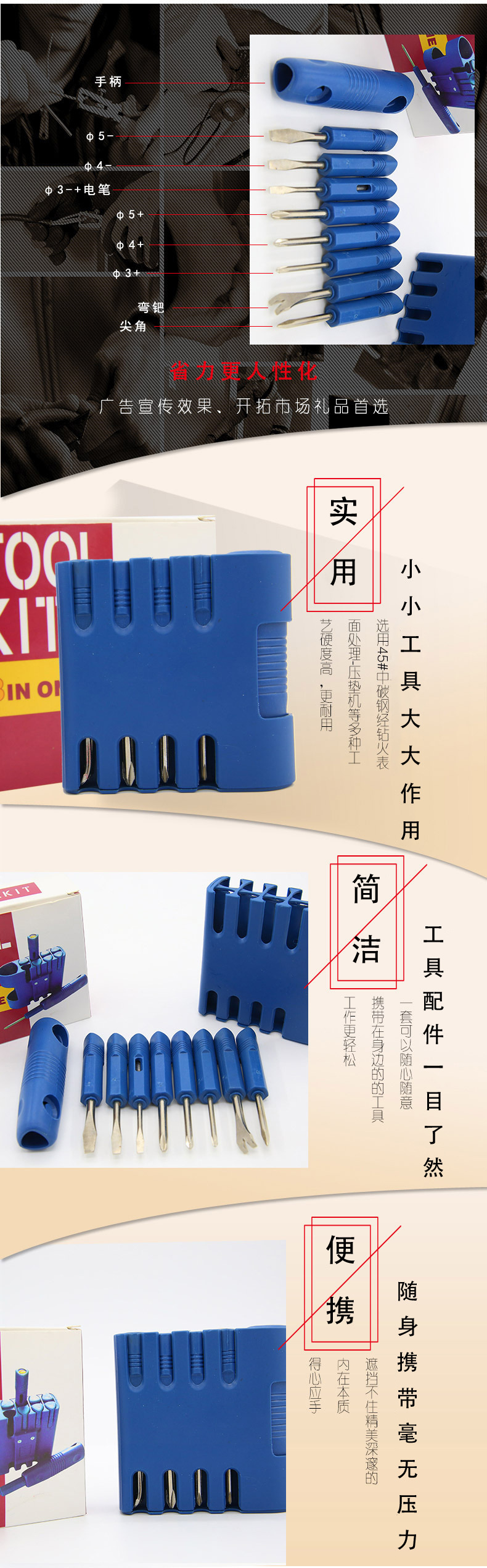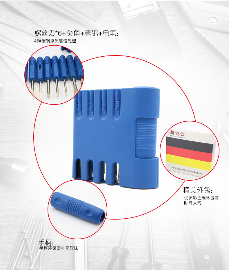 9合1便携工具礼品套装(蓝) 弹夹式造型随身小工具组9件套 物业送小礼品