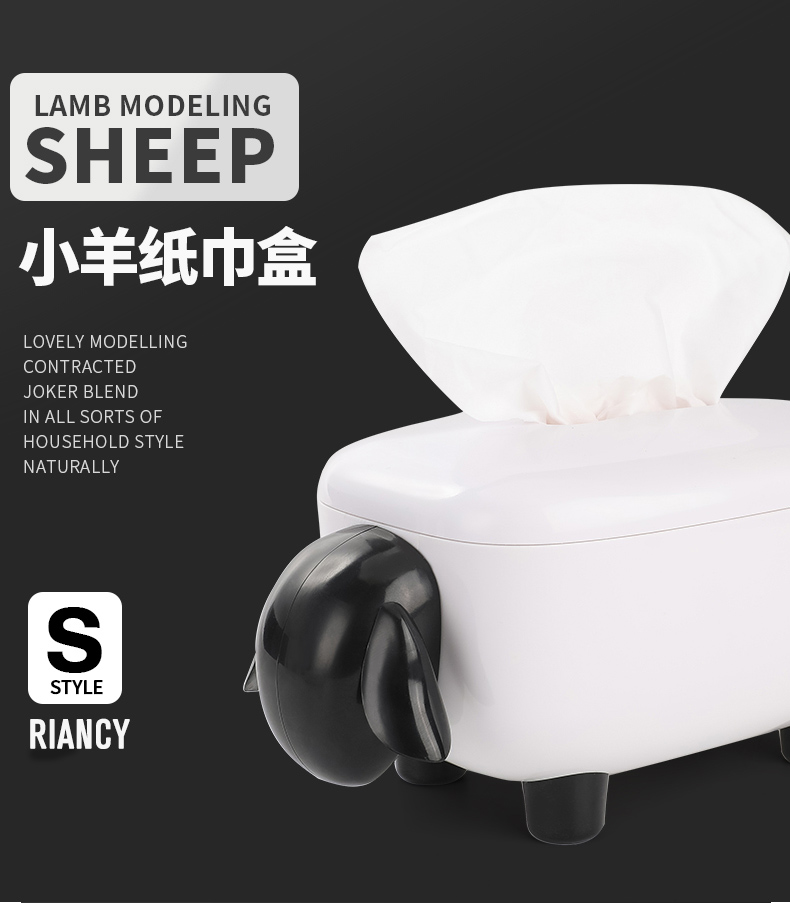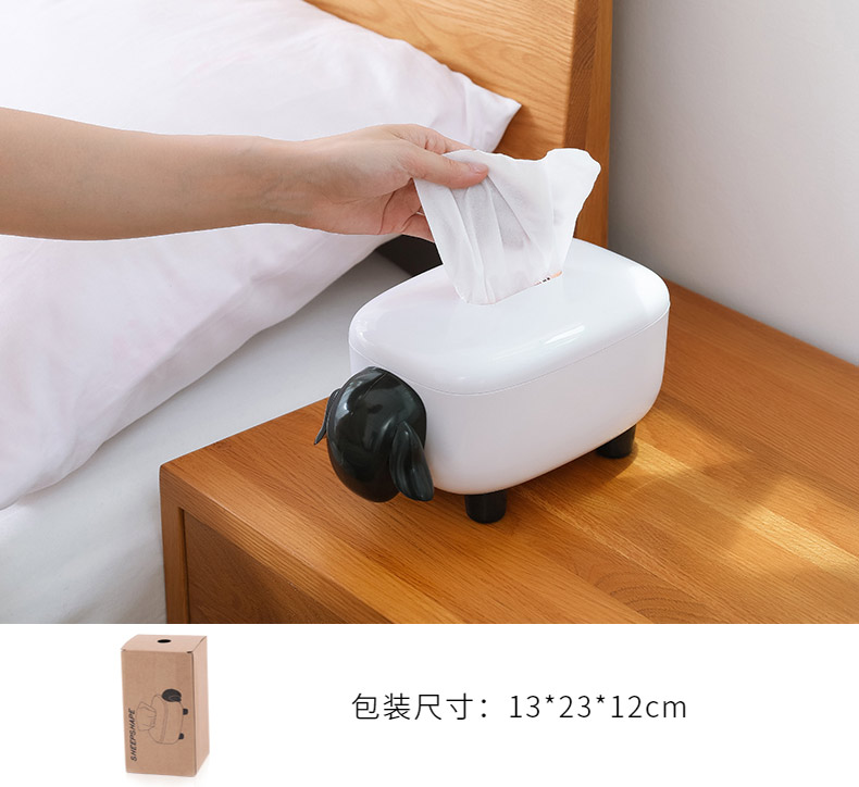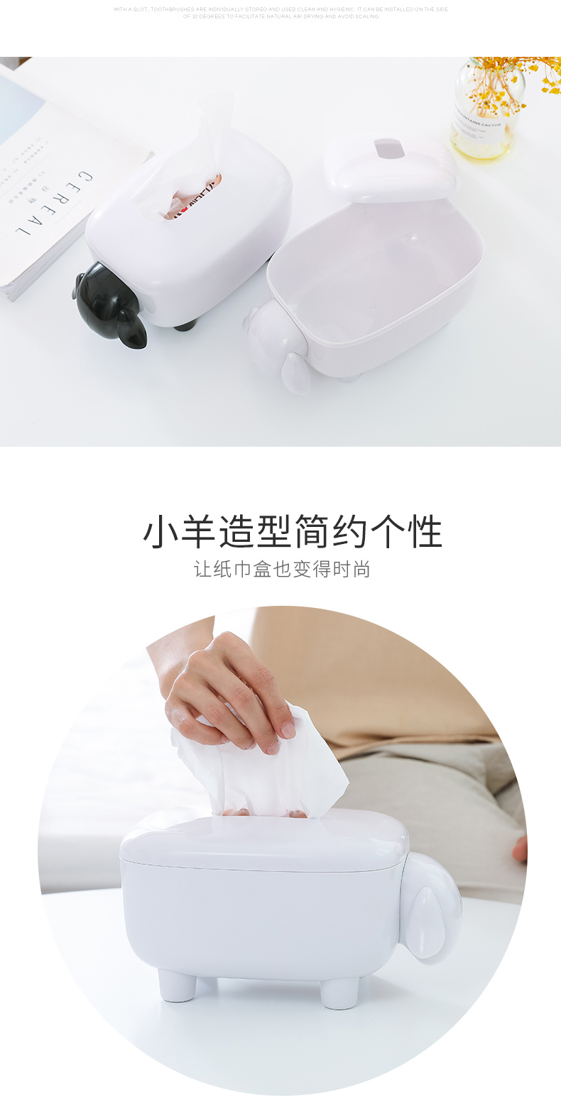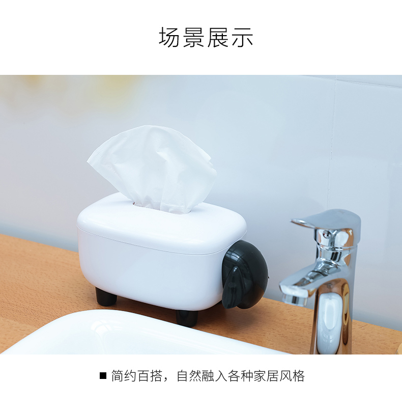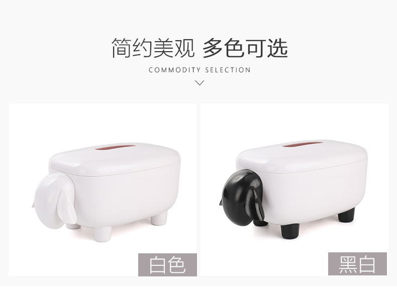 商品名称:简约卡通小羊纸巾盒 卷纸抽纸收纳盒--黑白色活动创意小礼品