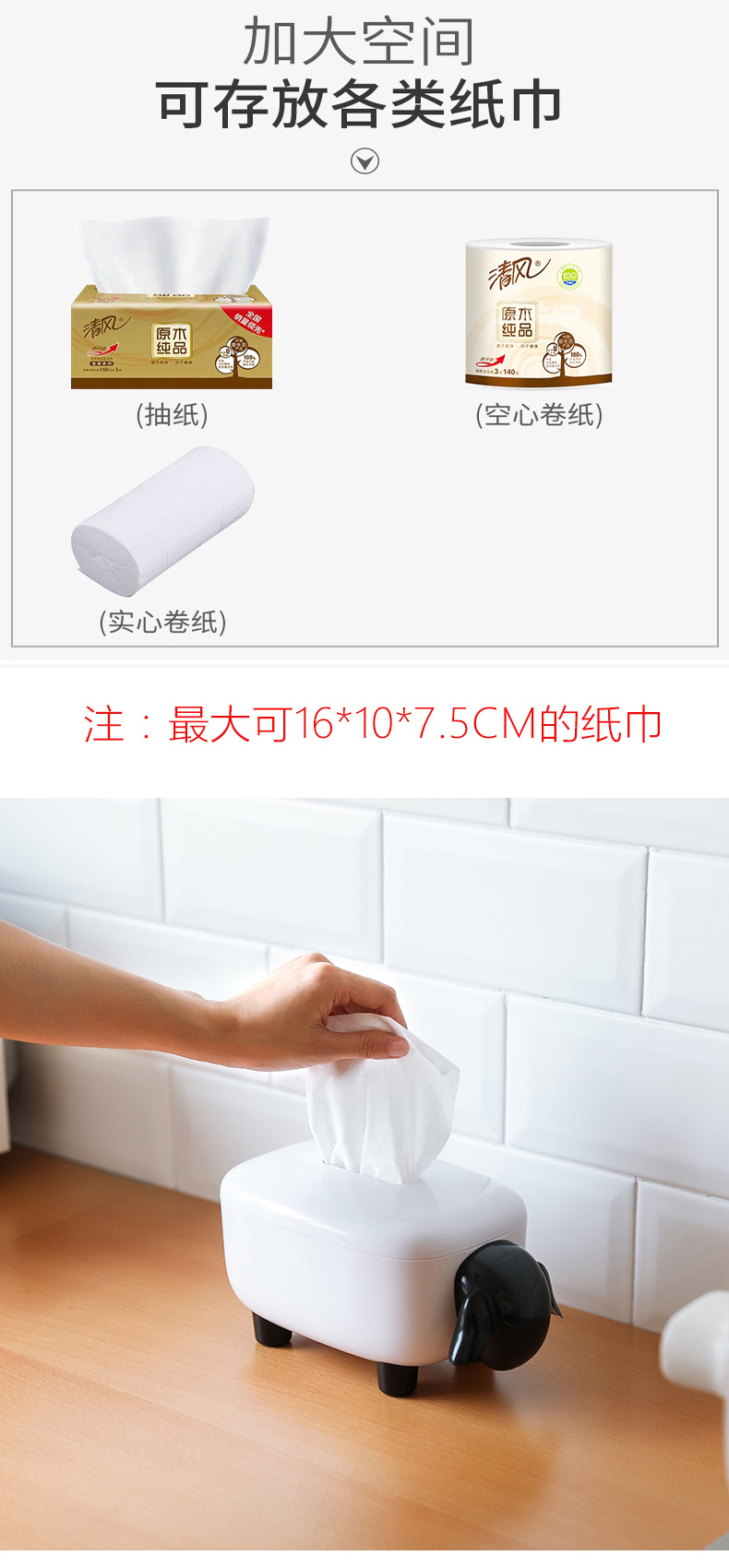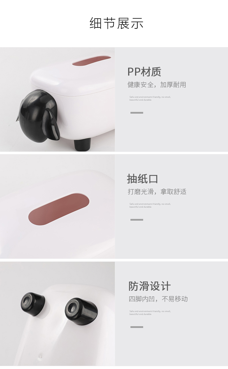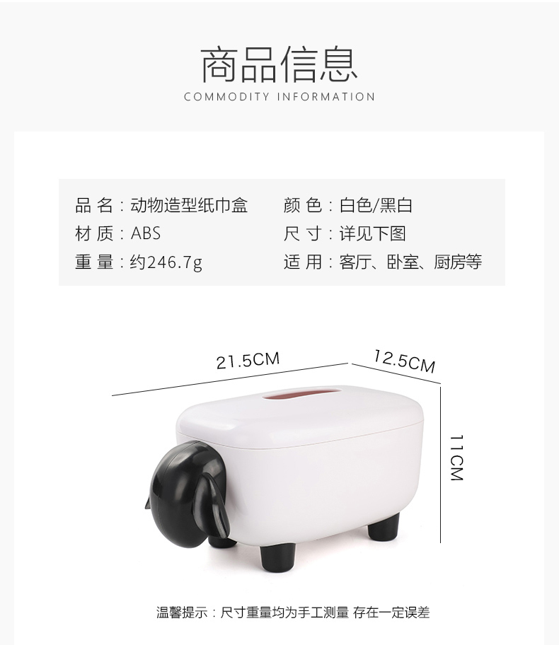 商品名称:简约卡通小羊纸巾盒 卷纸抽纸收纳盒--黑白色活动创意小礼品