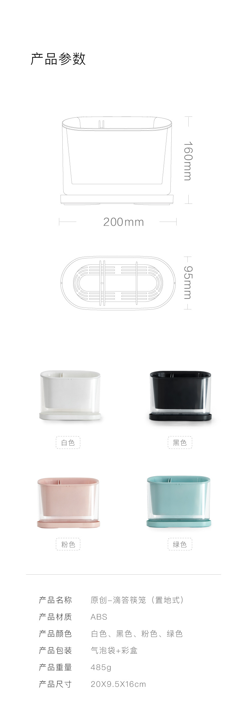 商品名称:壁挂式餐具沥水置物架 家用厨房收纳筒