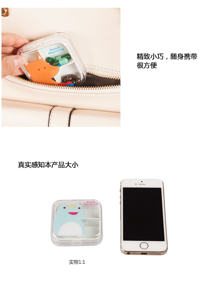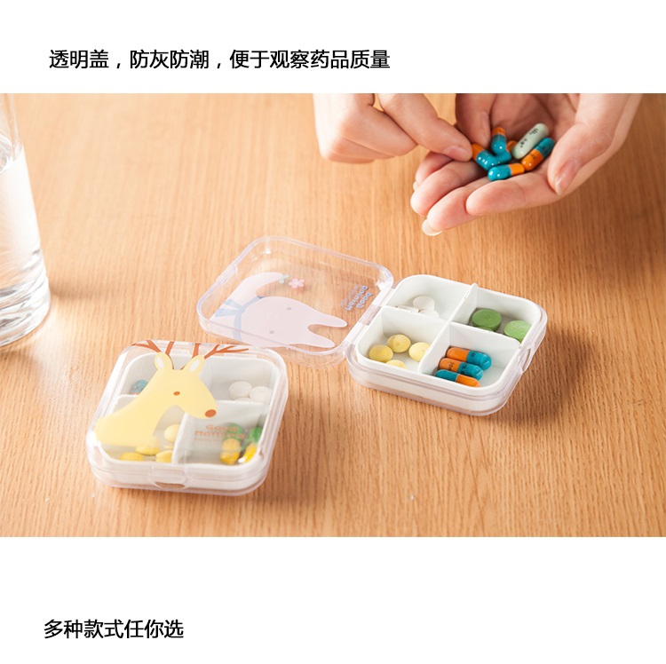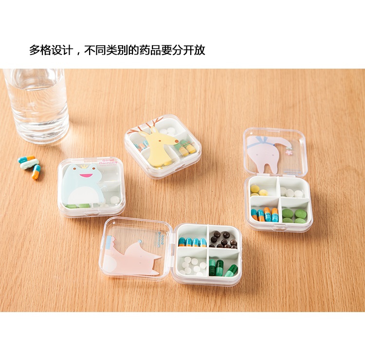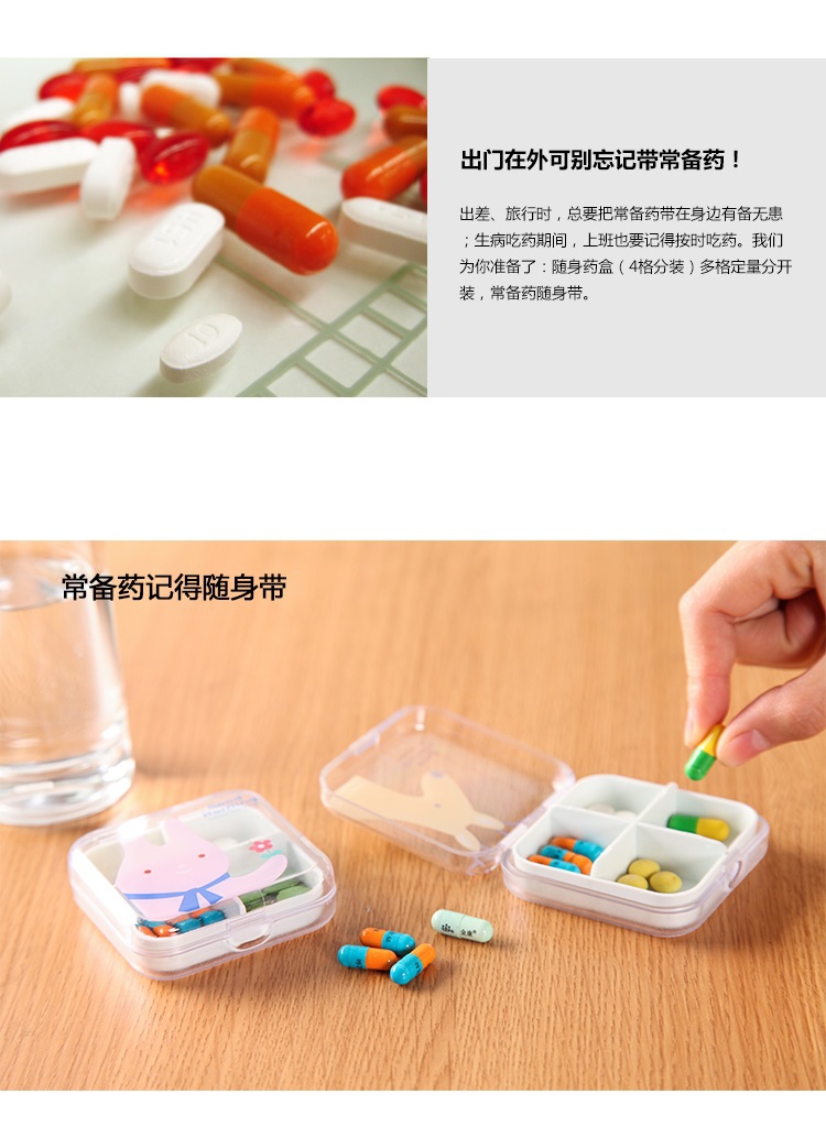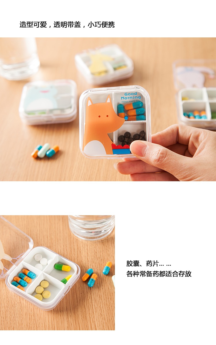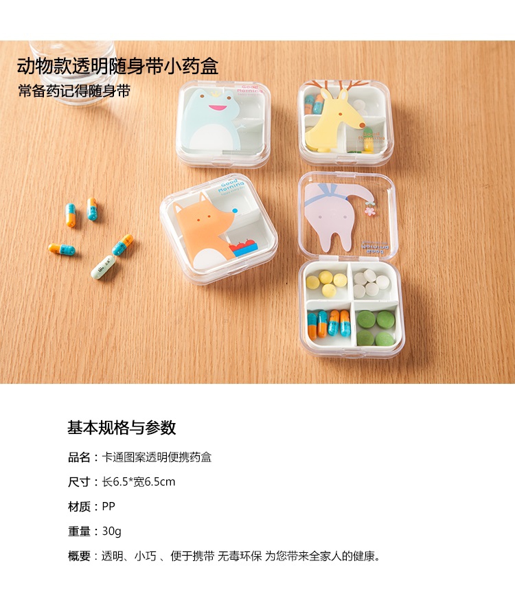 商品名称:四格透明小动物药盒 多格分装小巧便携药盒子 促销礼品送什么好 医药赠品