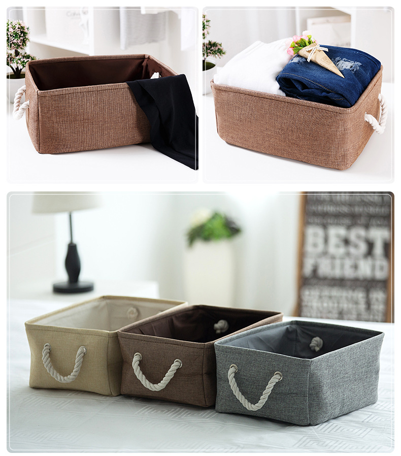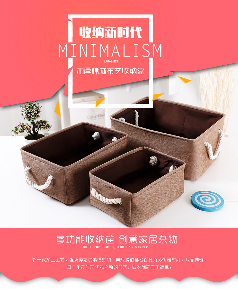 多功能布艺收纳筐 加厚棉麻收纳盒 居杂物收纳盒 实用礼品(大号)