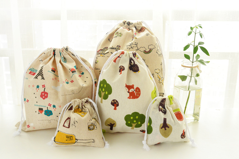 棉麻抽绳束口袋 旅行收纳袋 行李衣服收纳袋 化妆包分装袋 便宜实用的小礼品