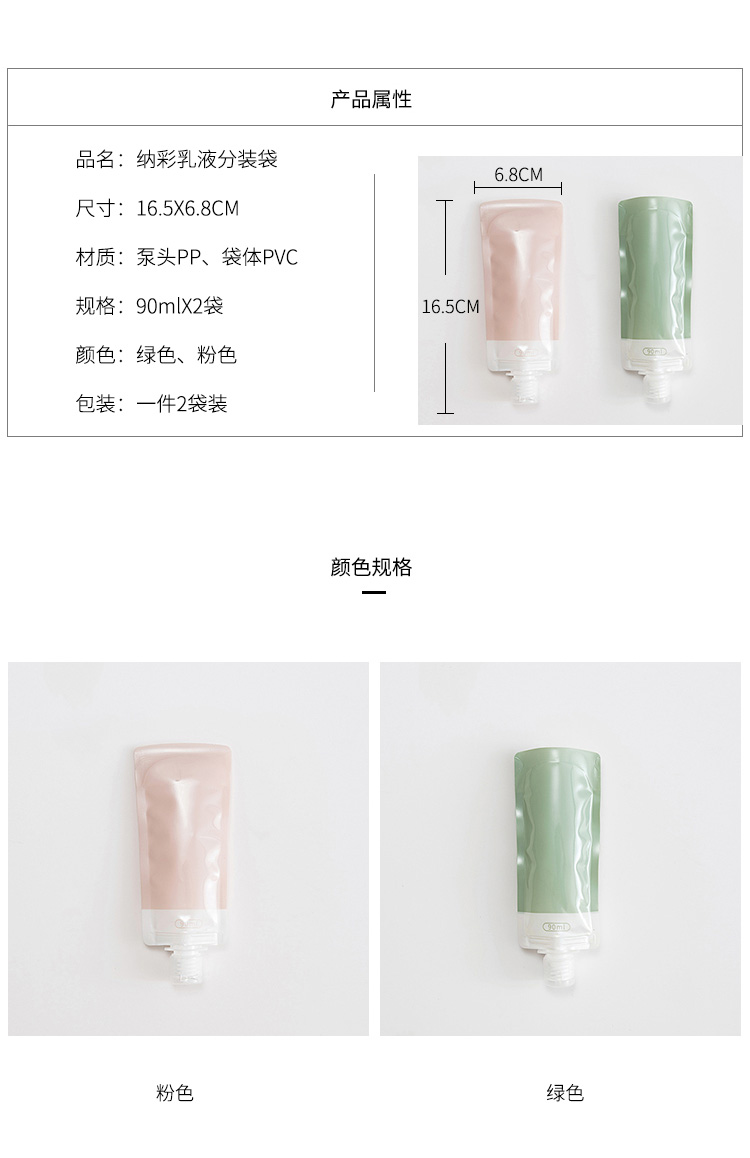 商品名称:旅行便携洗护用品乳液分装袋--90ML(两个装)