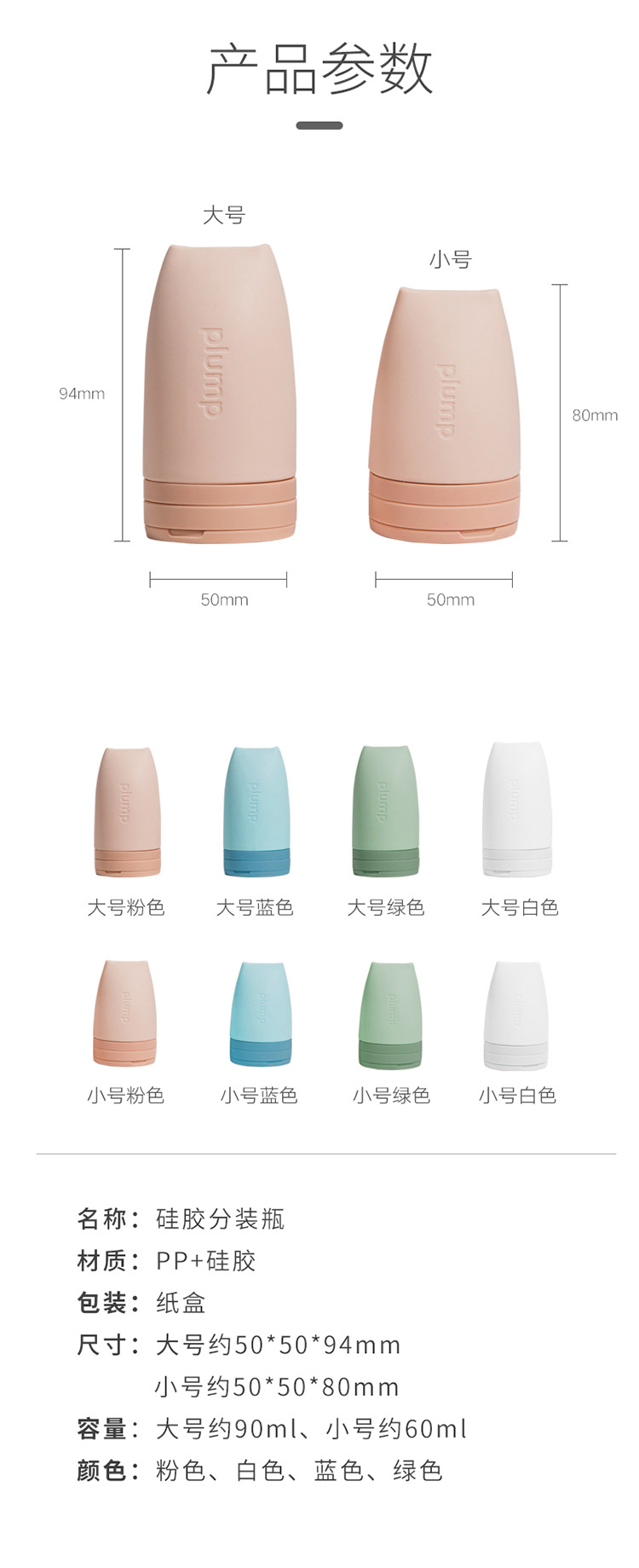 商品名称:旅行挤压式便携空瓶子 硅胶液体分装瓶 生活用品小礼品