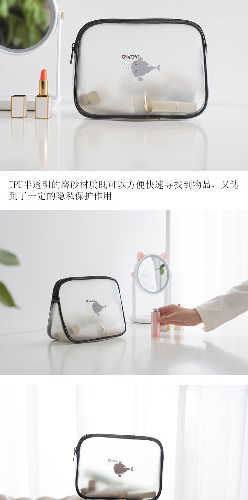 商品名称:迷雾系列半透明化妆包洗漱包 柔软有型回弹性好 防皱防水 送女生的礼品