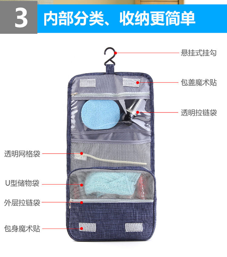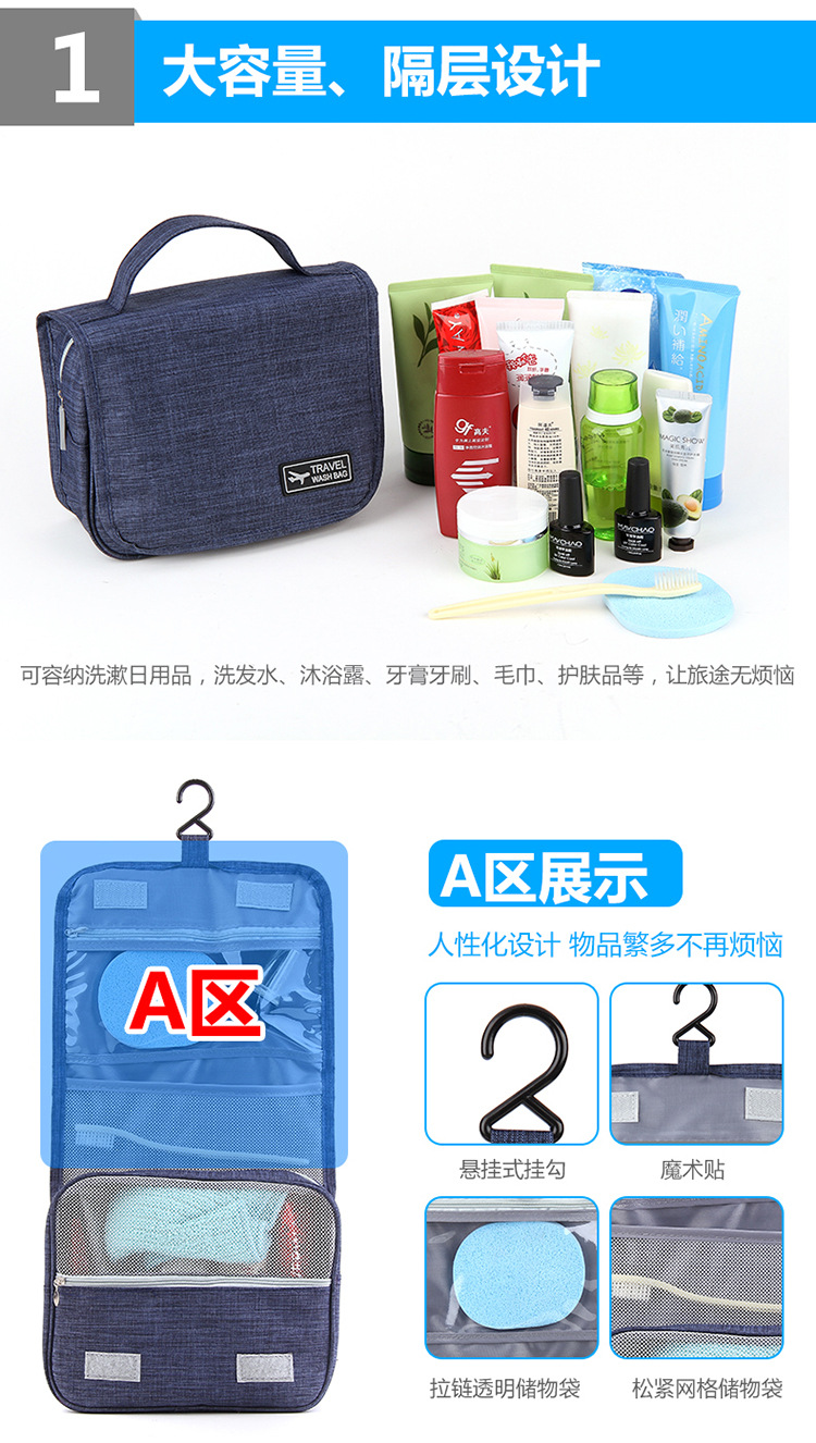 商品名称:旅行洗漱收纳包 透气防尘防潮耐用 可悬挂设计 适合小型比赛奖品