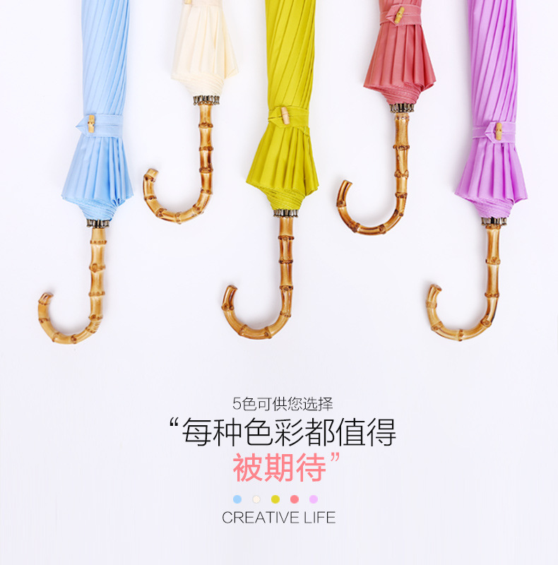 商品名称:创意竹柄小清新晴雨伞 简约马卡龙色系纯色 复古长柄伞 适合送给女生的礼品