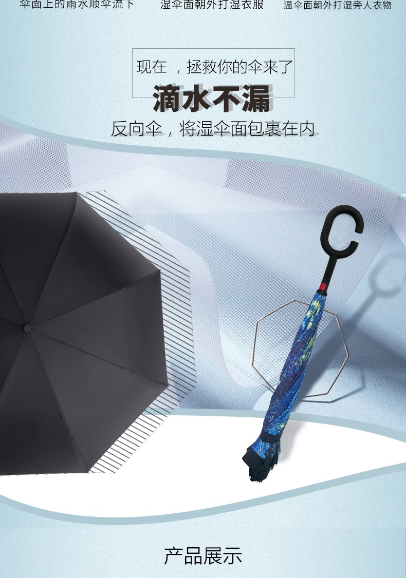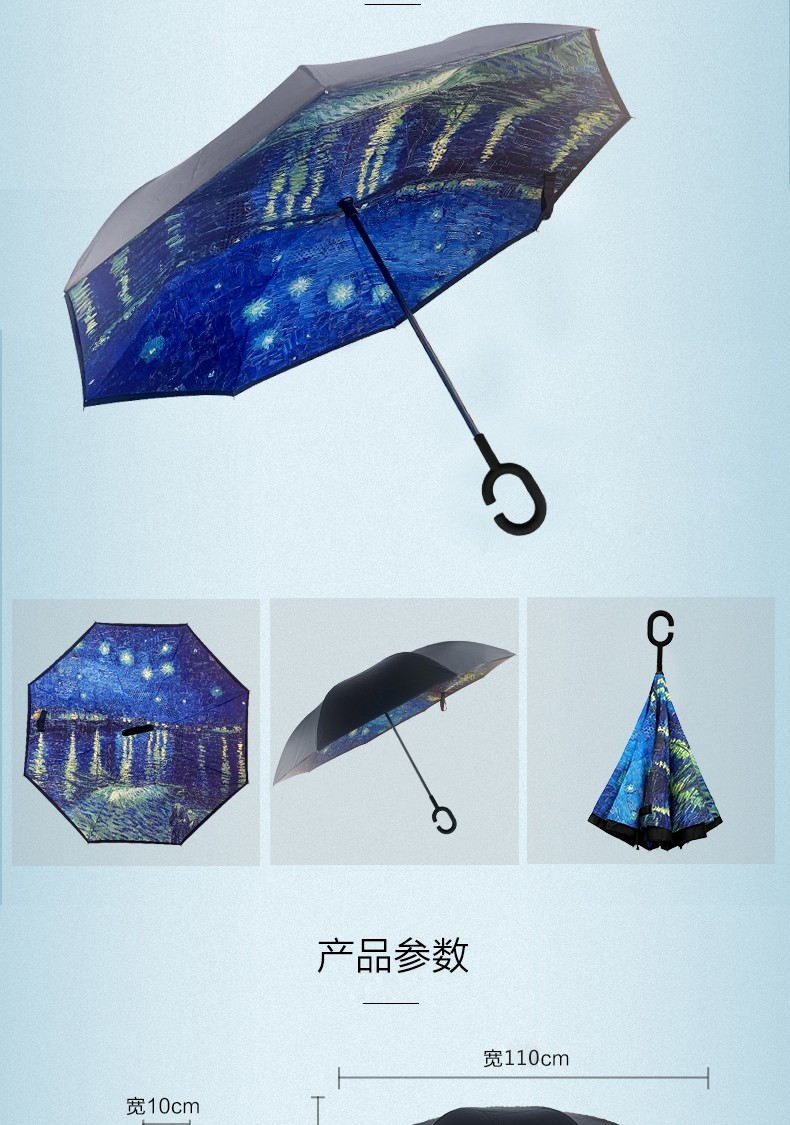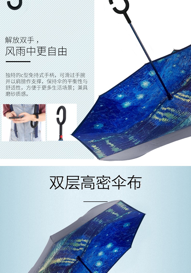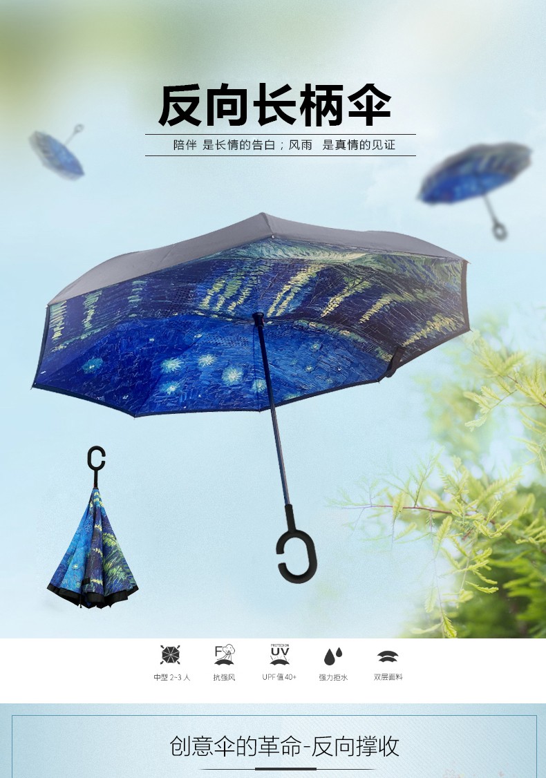 商品名称:菲驰(VENES)油画蓝反向长柄伞隔热防晒防风伞 公司送客户礼品