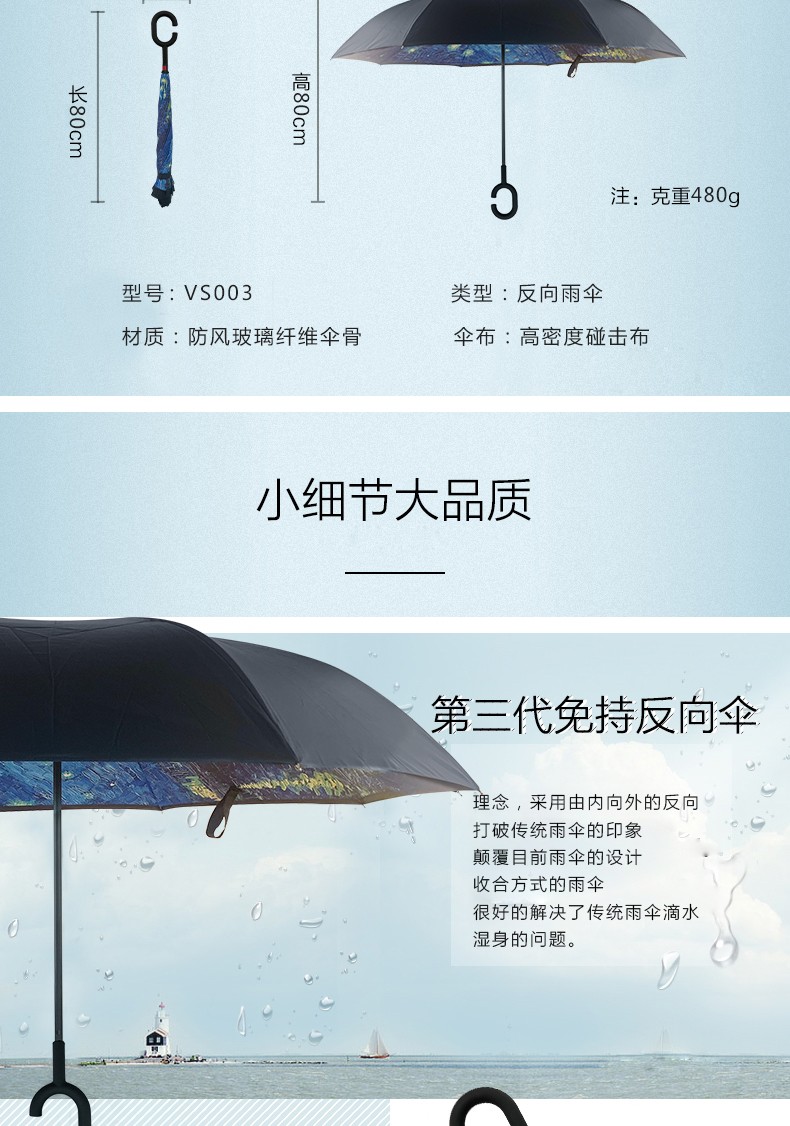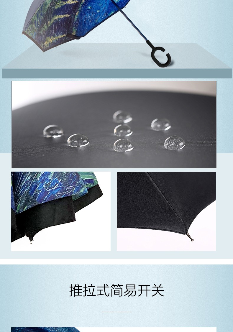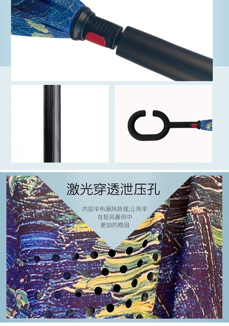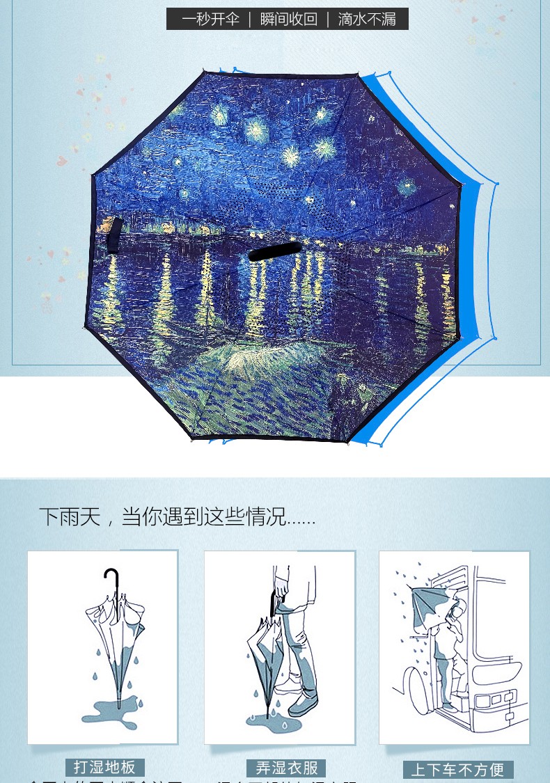 商品名称:菲驰(VENES)油画蓝反向长柄伞隔热防晒防风伞 公司送客户礼品
