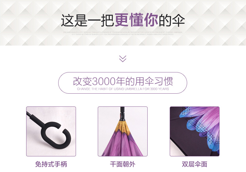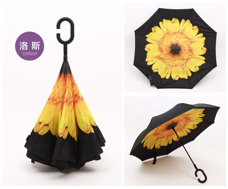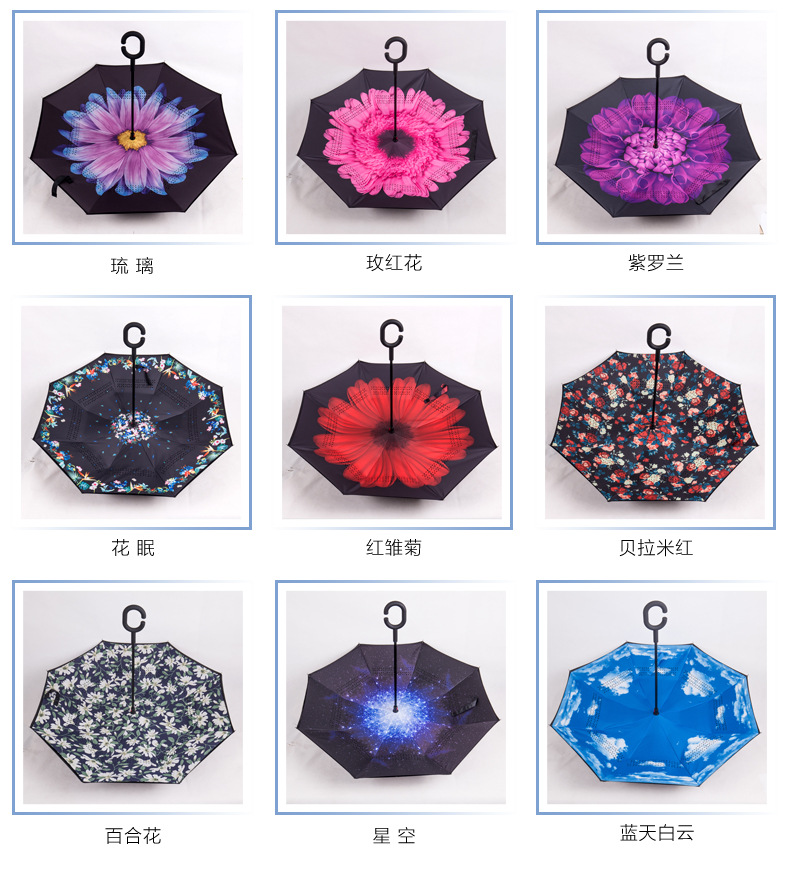 商品名称:花开四季反向伞 创意第三代c型手柄双层免持式反向伞 长柄伞 公司活动纪念品