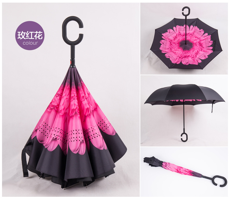 蒲公英反向伞 创意第三代c型手柄双层免持式反向伞 长柄伞 公司活动纪念品