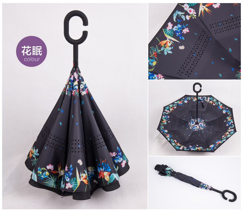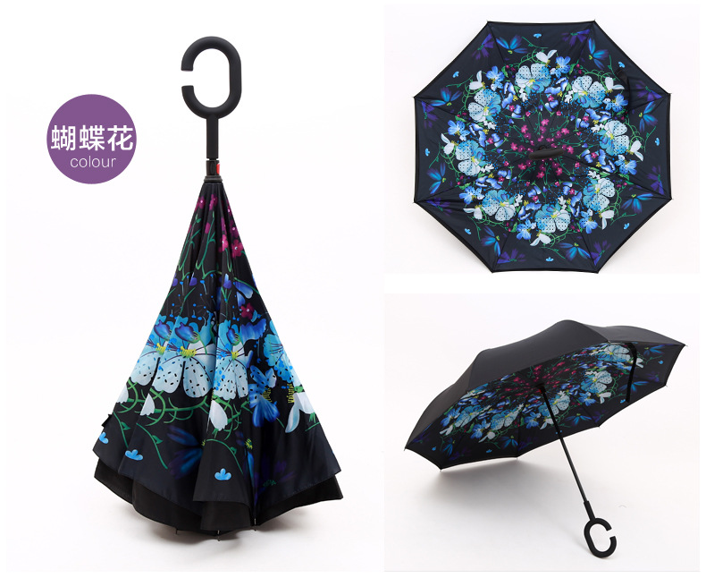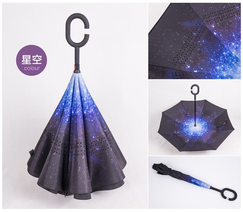 商品名称:蒲公英反向伞 创意第三代c型手柄双层免持式反向伞 长柄伞 公司活动纪念品