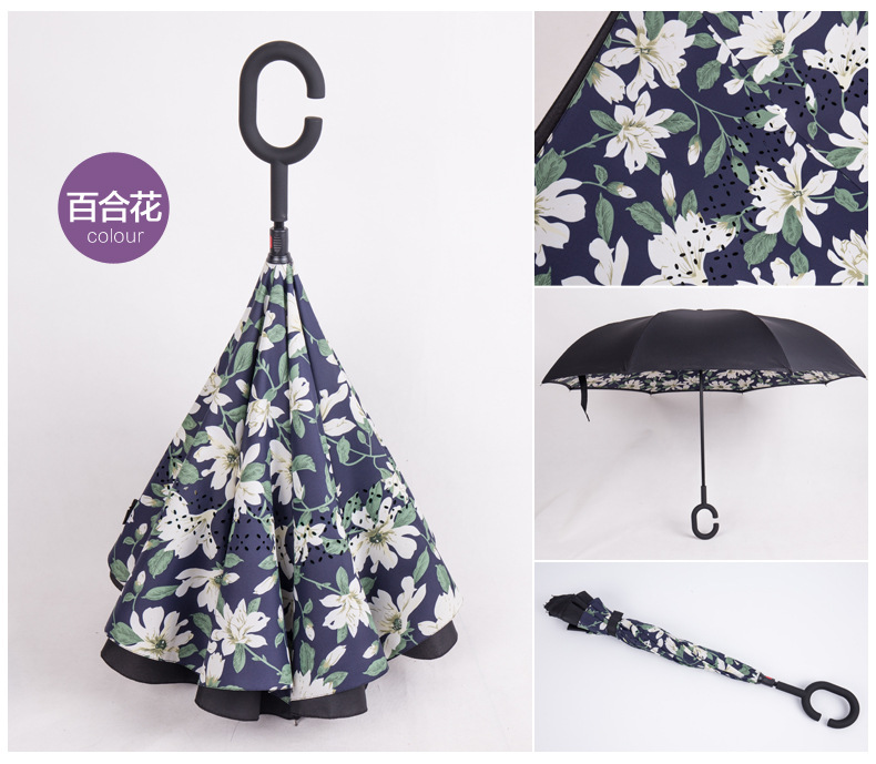 商品名称:紫罗兰反向伞 创意第三代c型手柄双层免持式反向伞 长柄伞 公司活动纪念品
