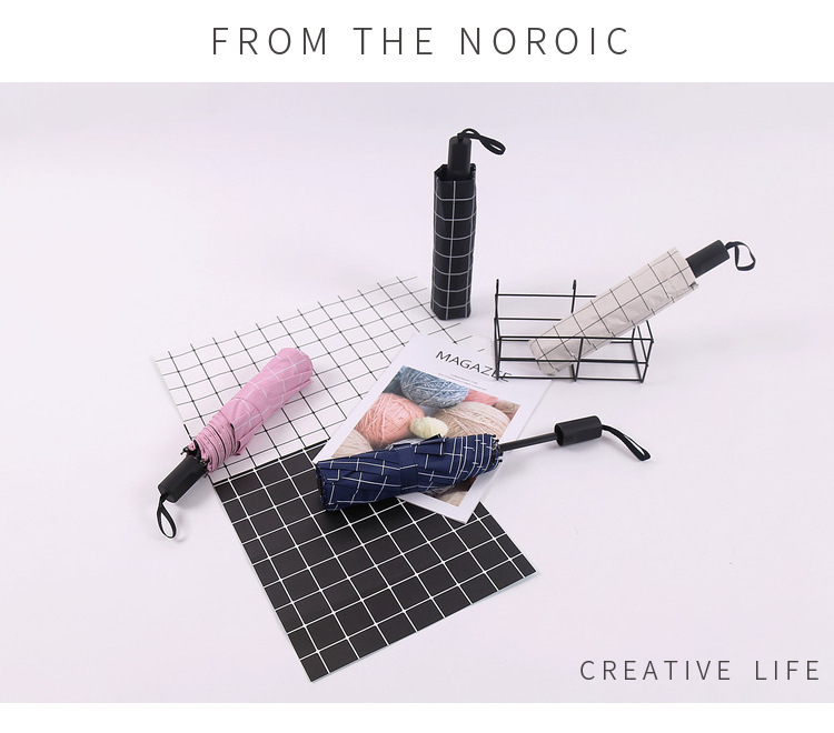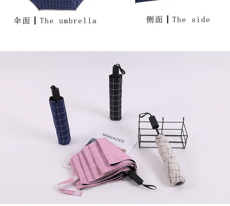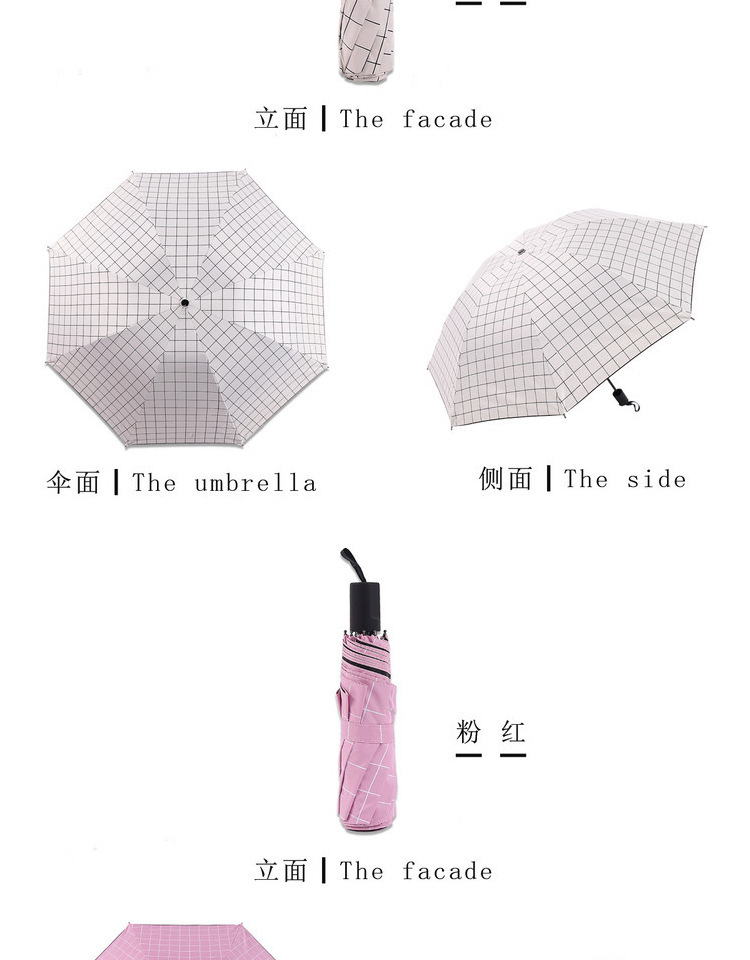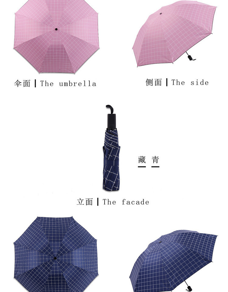 商品名称:格子太阳伞 黑胶三折晴雨伞 商务礼品
