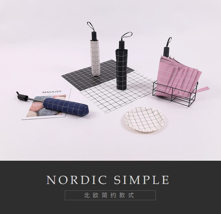 格子太阳伞 黑胶三折晴雨伞 商务礼品