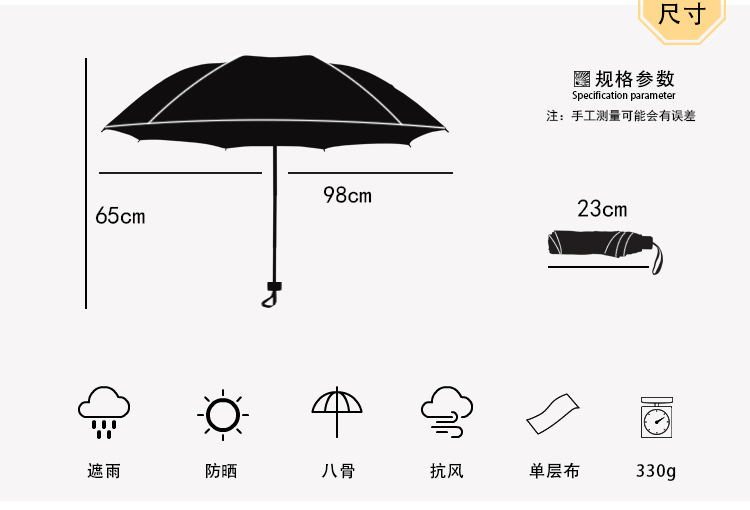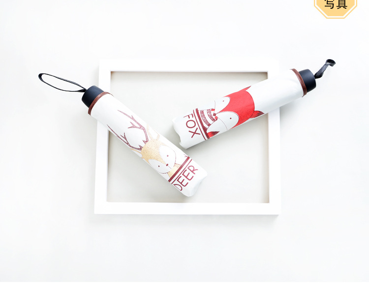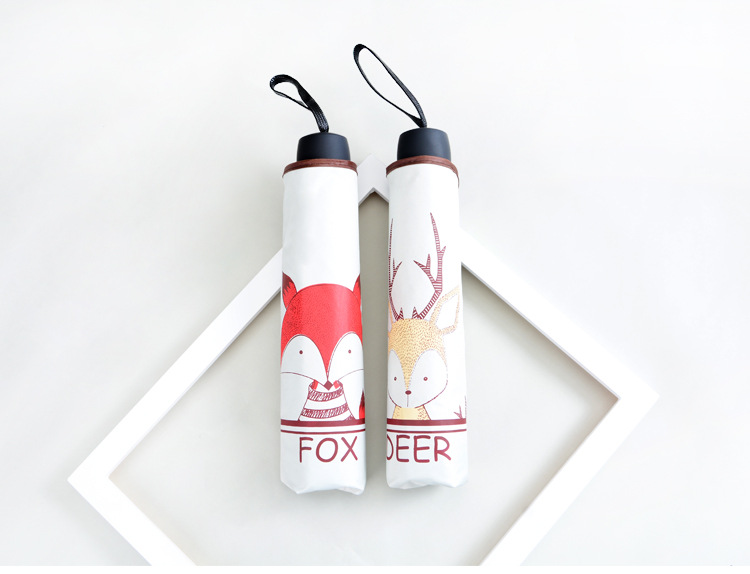 商品名称:创意卡通狐狸晴雨伞 三折折叠遮阳伞 学生礼品