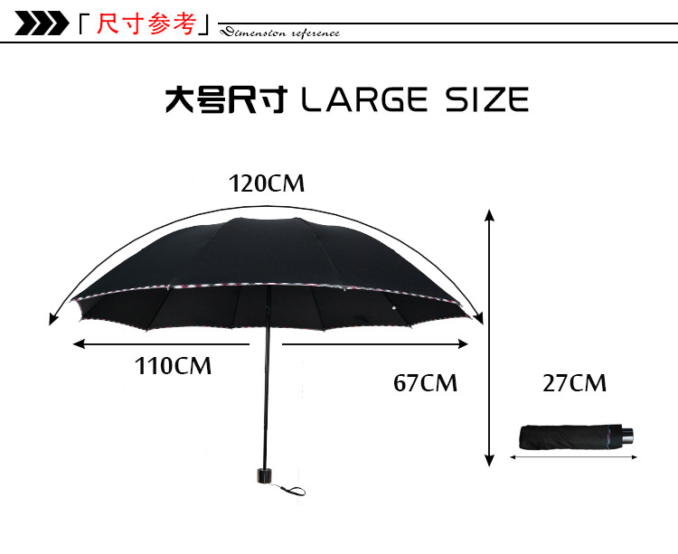 商品名称:经典十骨加固商务伞 加大三折伞 商务实用礼品