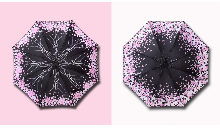 【樱花醉】外黑胶晴雨伞 三折防嗮遮阳伞 折叠晴雨两用伞 实用促销礼品