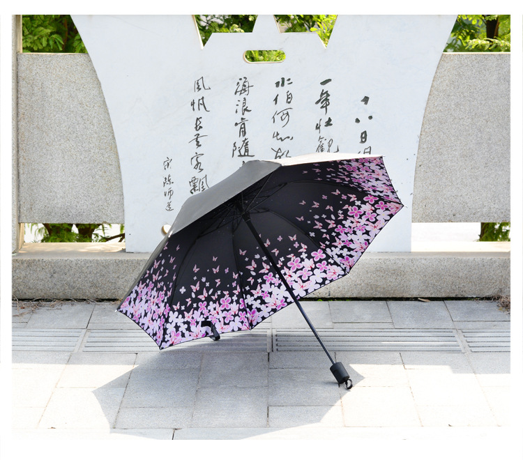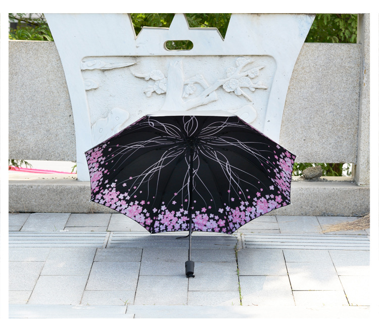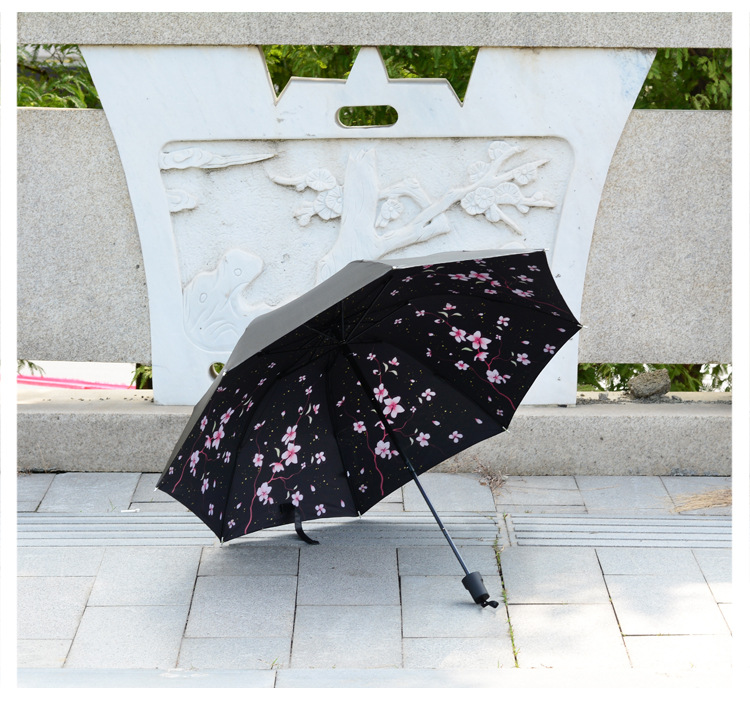 商品名称:【樱花醉】外黑胶晴雨伞 三折防嗮遮阳伞 折叠晴雨两用伞 实用促销礼品