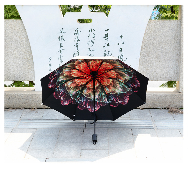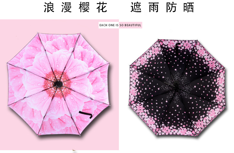 商品名称:【蝶念花】外黑胶晴雨伞 三折防嗮遮阳伞 折叠晴雨两用伞 实用促销礼品