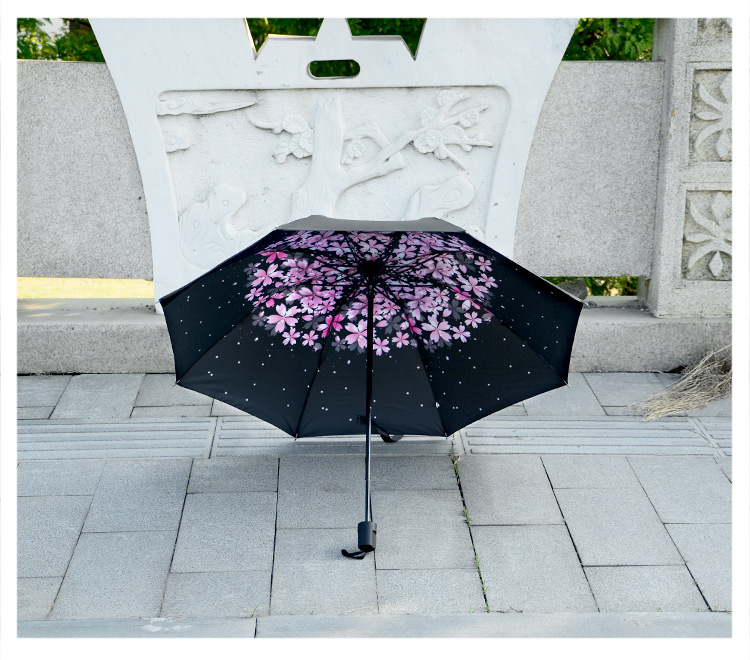 【蝴蝶兰】外黑胶晴雨伞 三折防嗮遮阳伞 折叠晴雨两用伞 艺术礼品定制