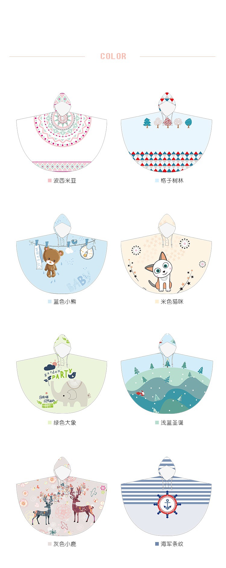 商品名称:【蓝色小熊】 清新时尚出游成人雨披 轻薄透气时尚印花雨衣