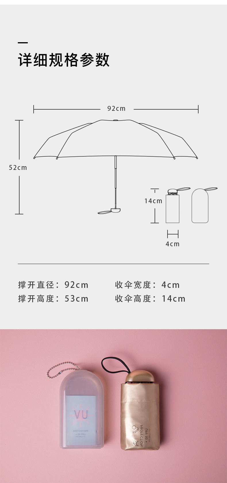 商品名称:扁伞 5折超迷你14cm黑胶伞 口袋胶囊伞 商务礼品送什么好