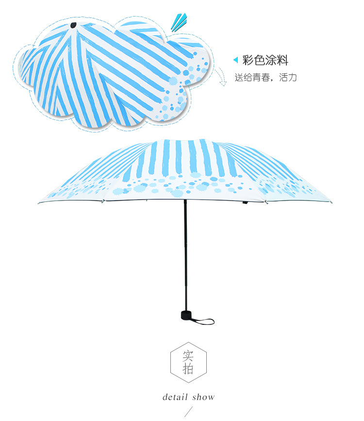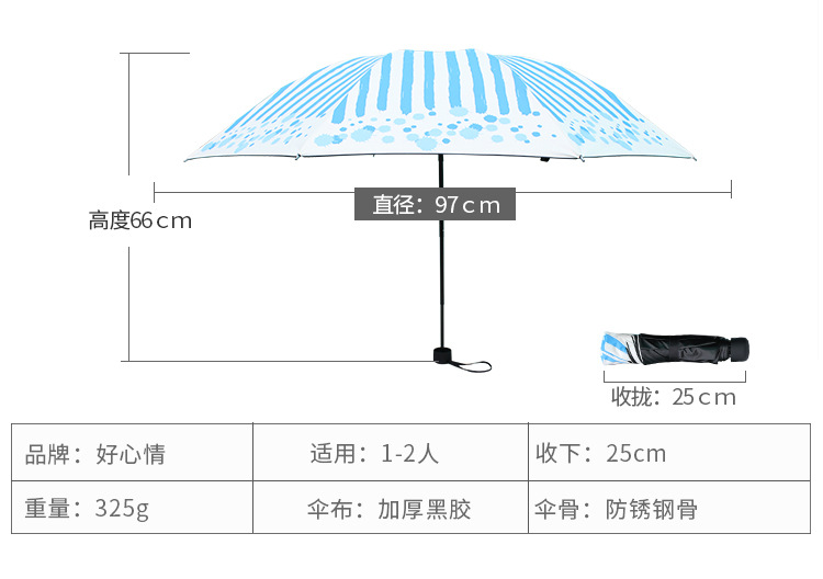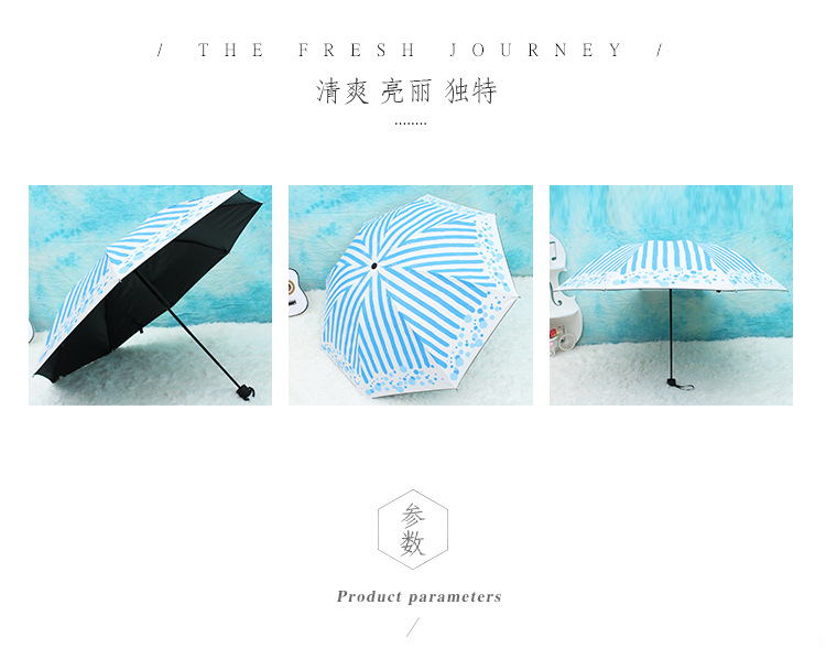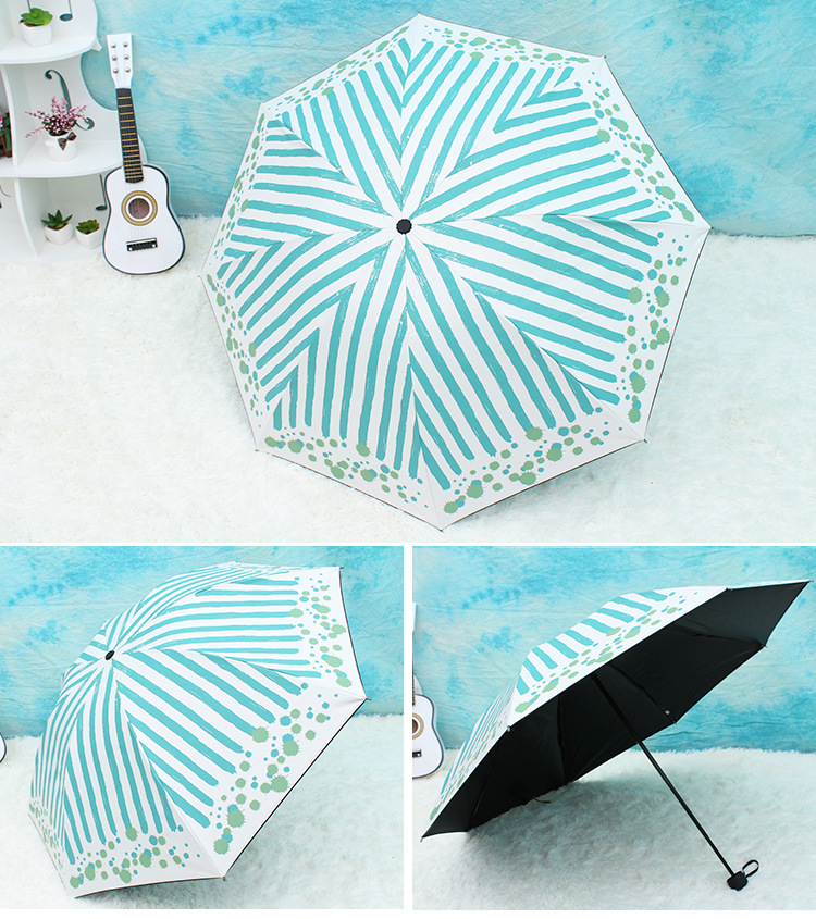 商品名称:清新防晒黑胶伞 三折晴雨伞 创意两用防紫外线遮阳伞 夏季礼品