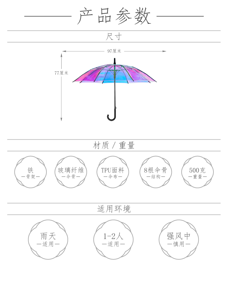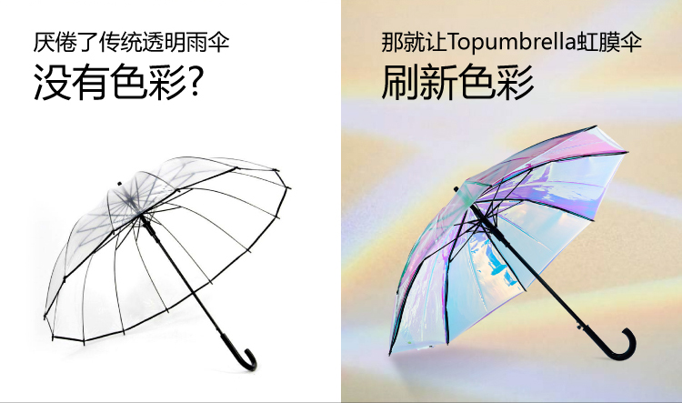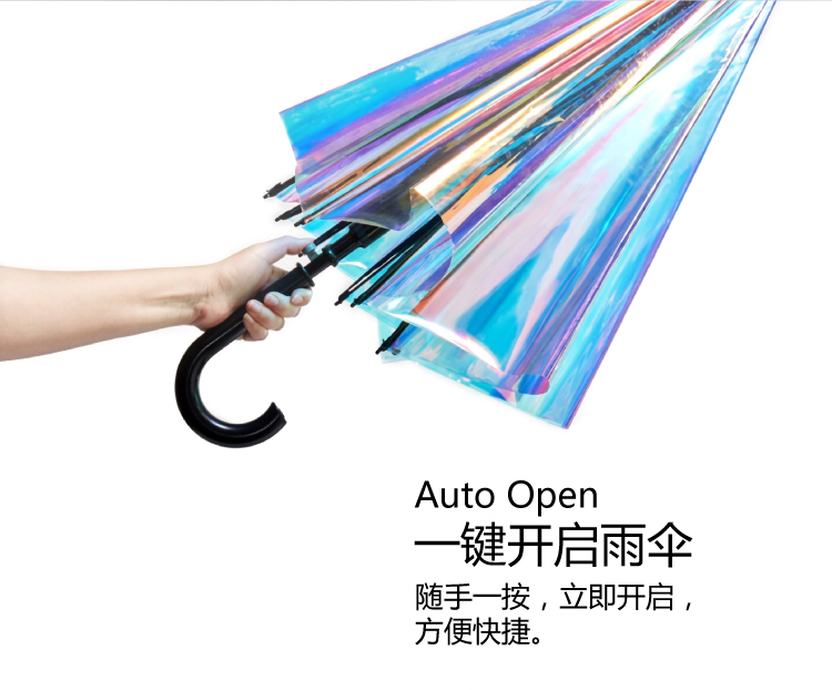 商品名称:炫彩防风长伞INS渐变镭射虹膜透明彩虹伞自动长柄伞 适合公司活动的礼物