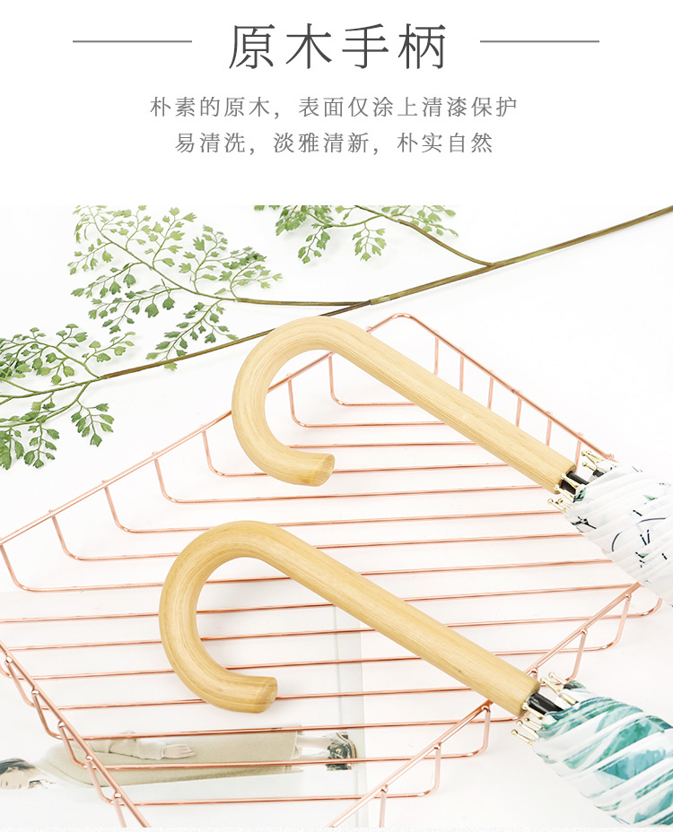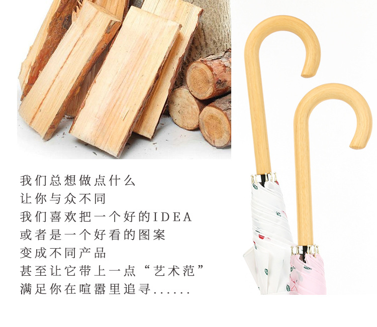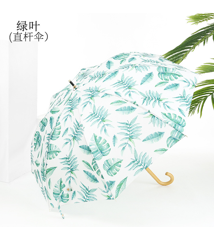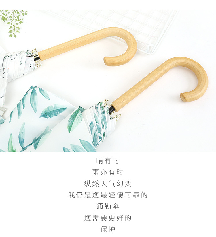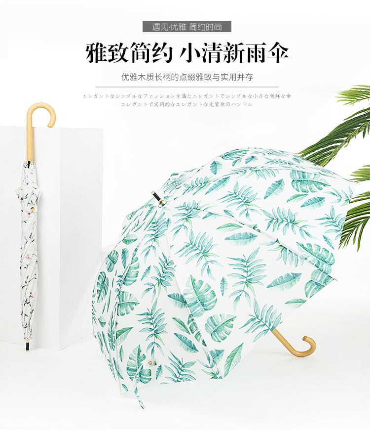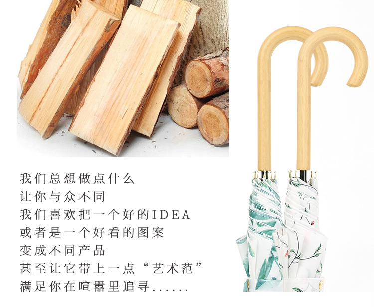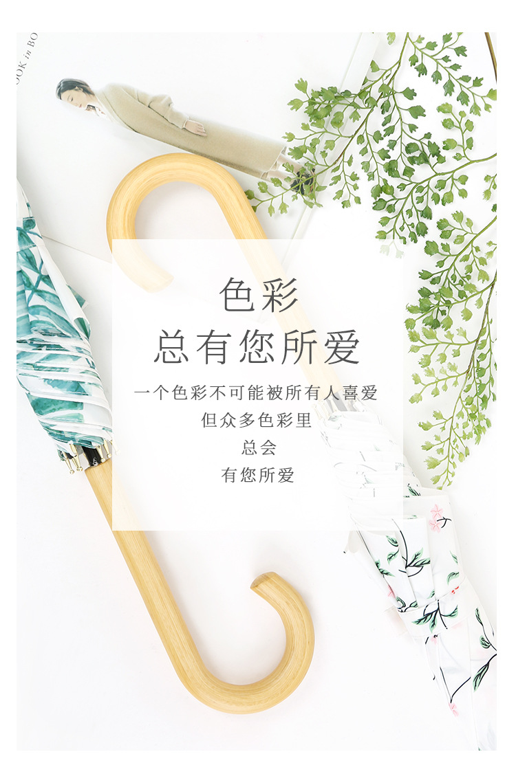 商品名称:清新文艺木柄弯柄直杆伞雨晴两用伞户外遮阳 夏日礼品