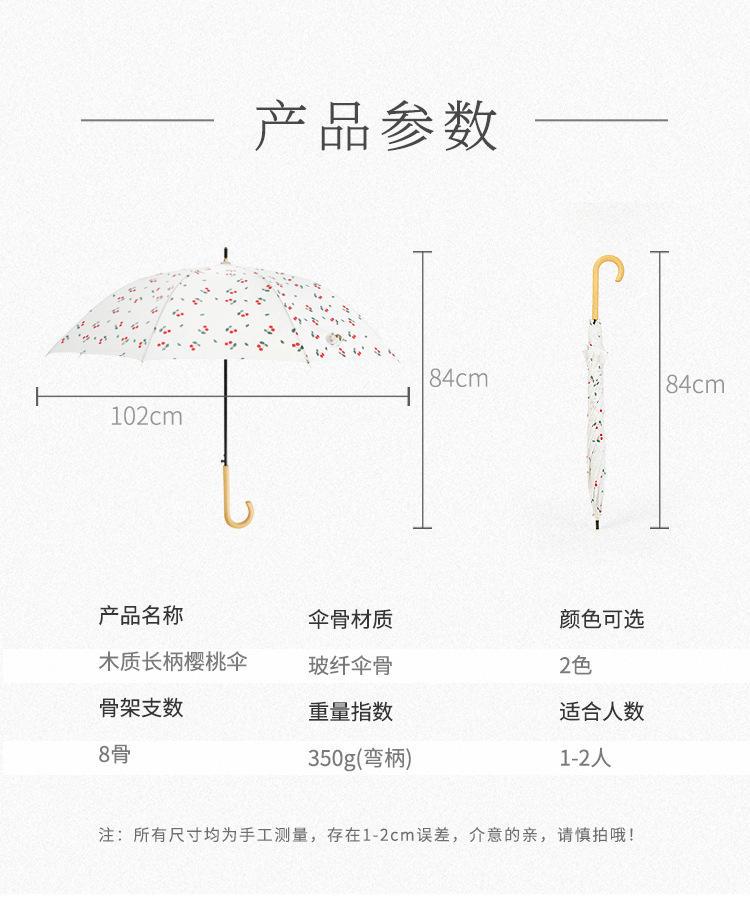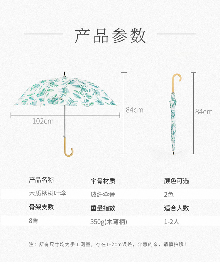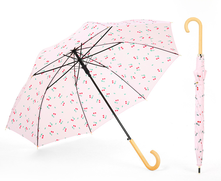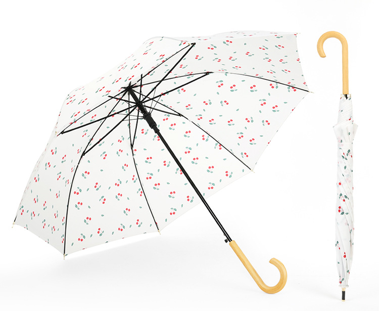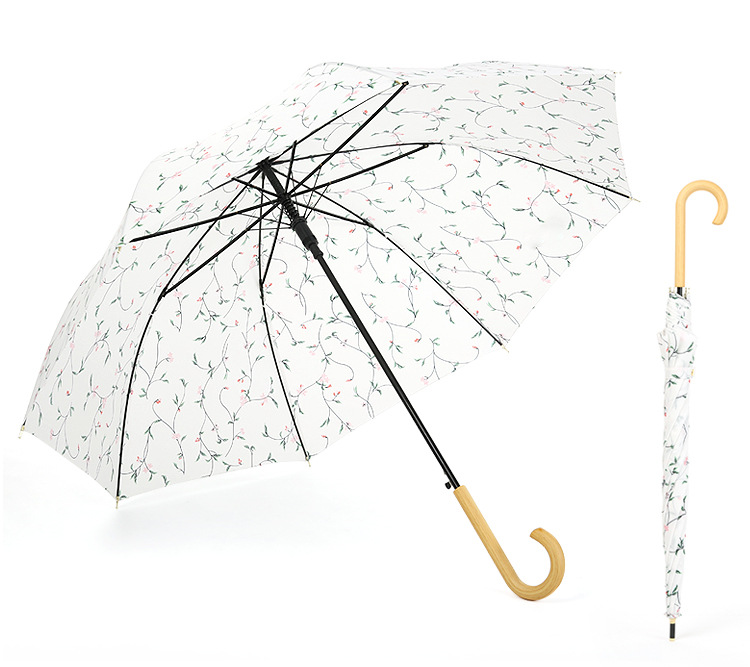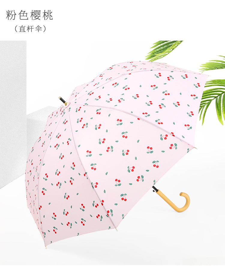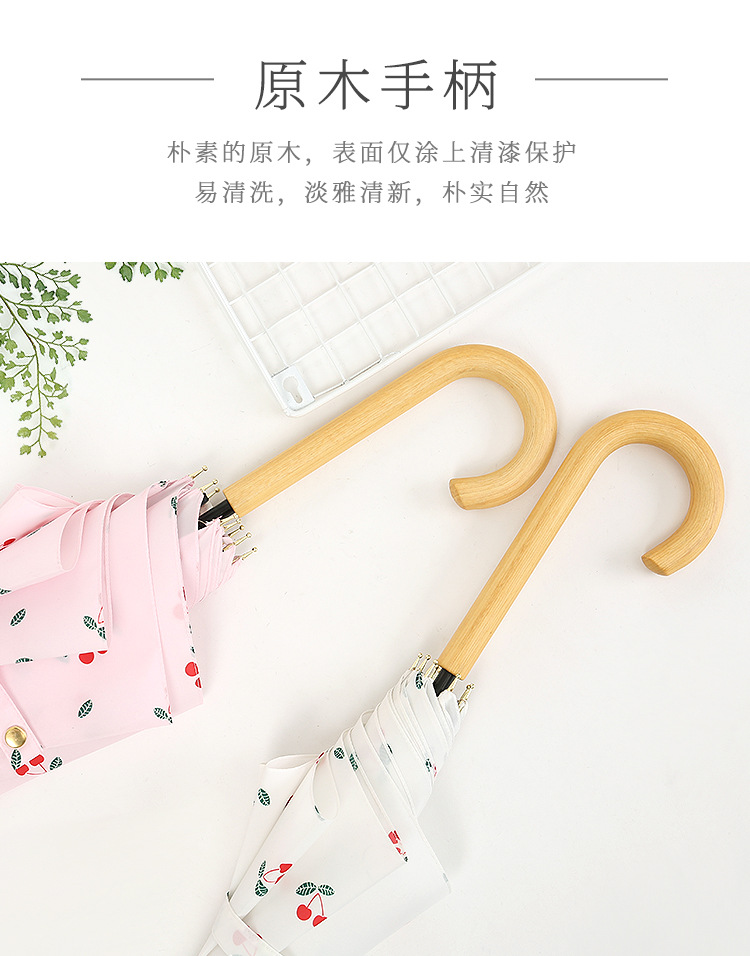 商品名称:清新文艺木柄弯柄直杆伞雨晴两用伞户外遮阳 夏日礼品