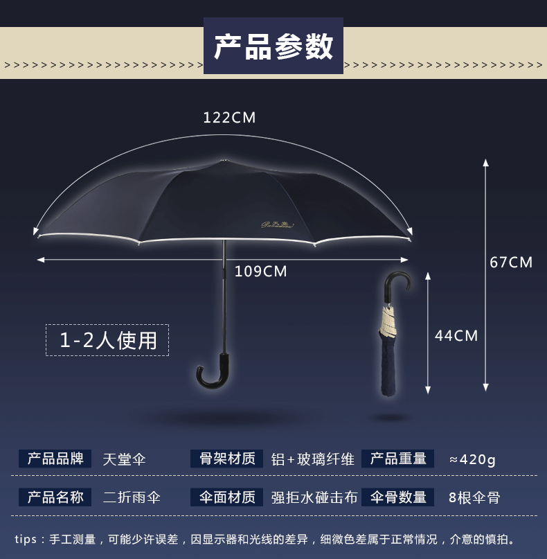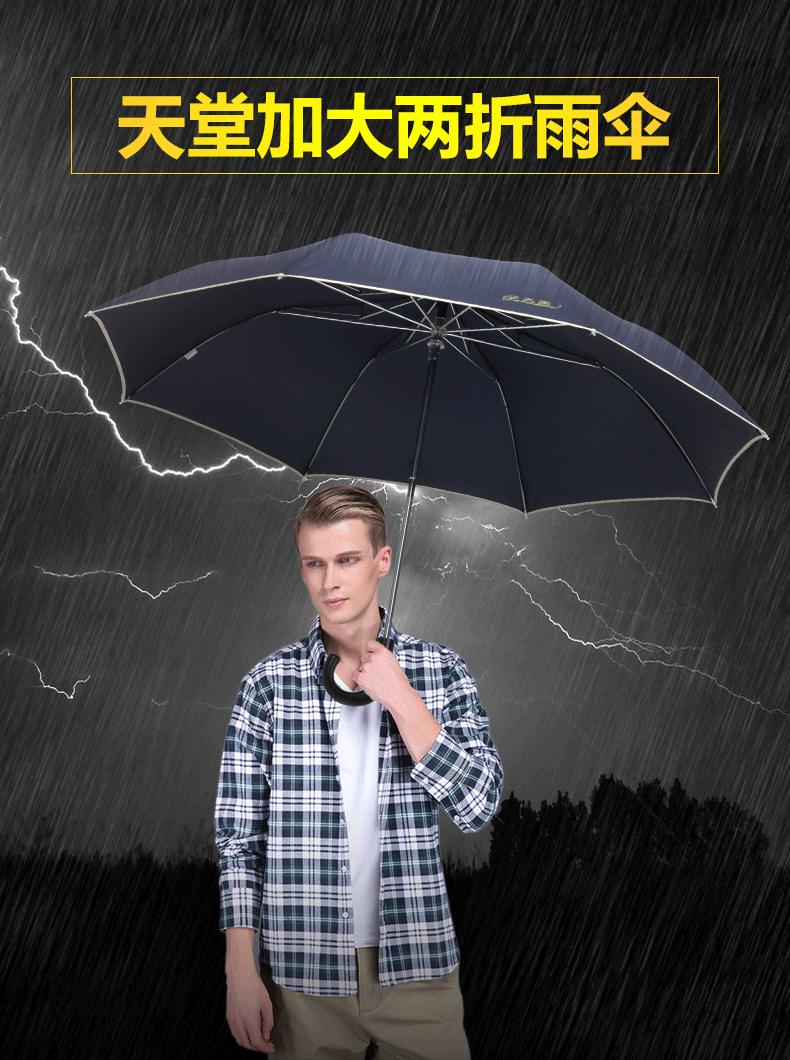 商品名称:天堂伞 时尚商务加大两折雨伞 半自动弯勾柄伞 商务小礼品