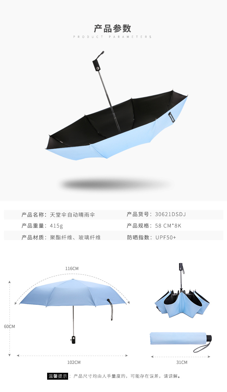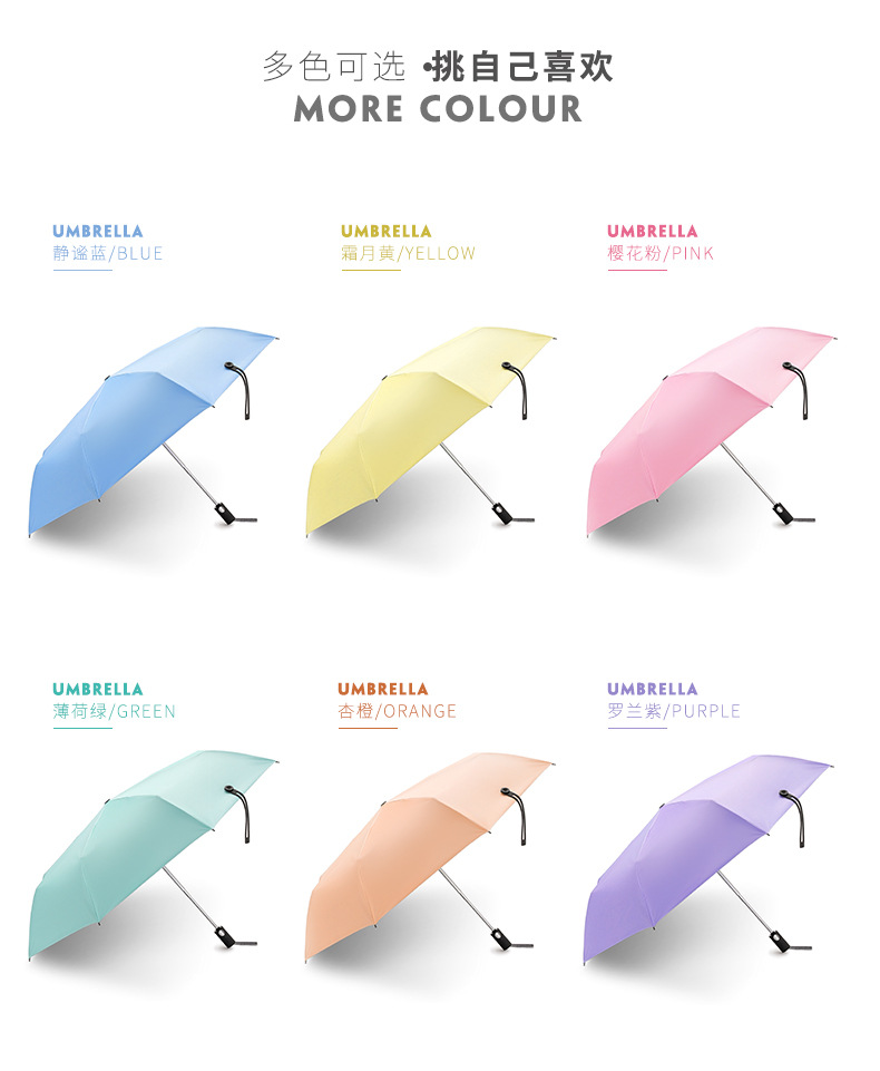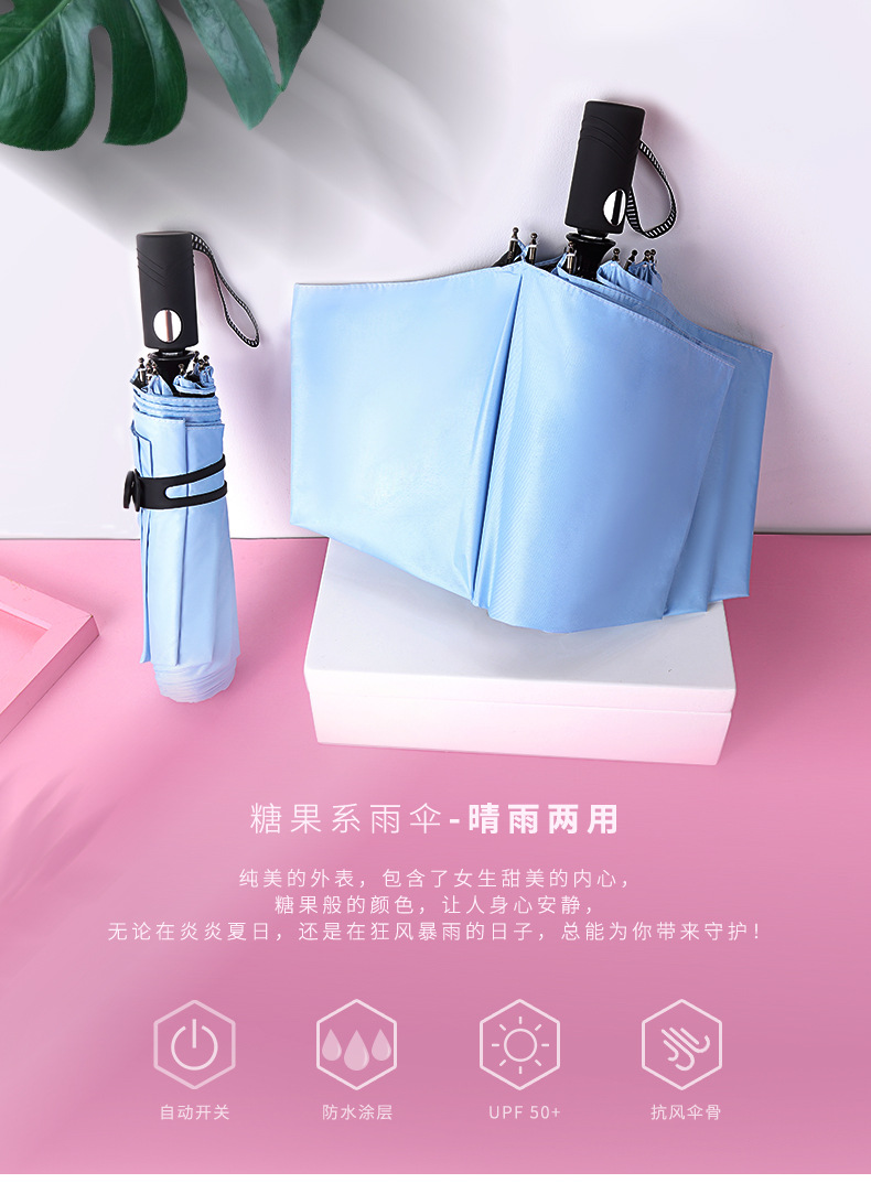 商品名称:天堂伞 糖果色纯色大方全自动晴雨伞 黑胶防晒太阳伞 实用宣传小礼品