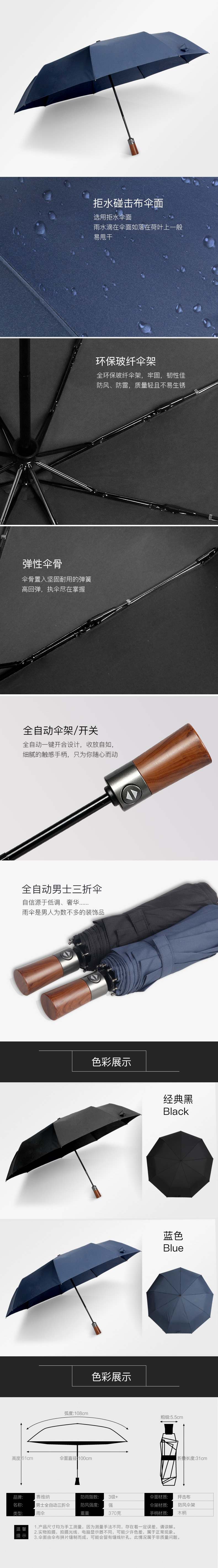 商品名称:SAIVEINA 木手柄自动三折雨伞 自动开收折叠广告伞 参与奖礼品